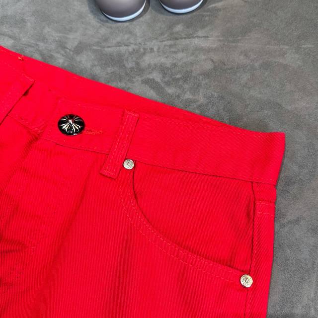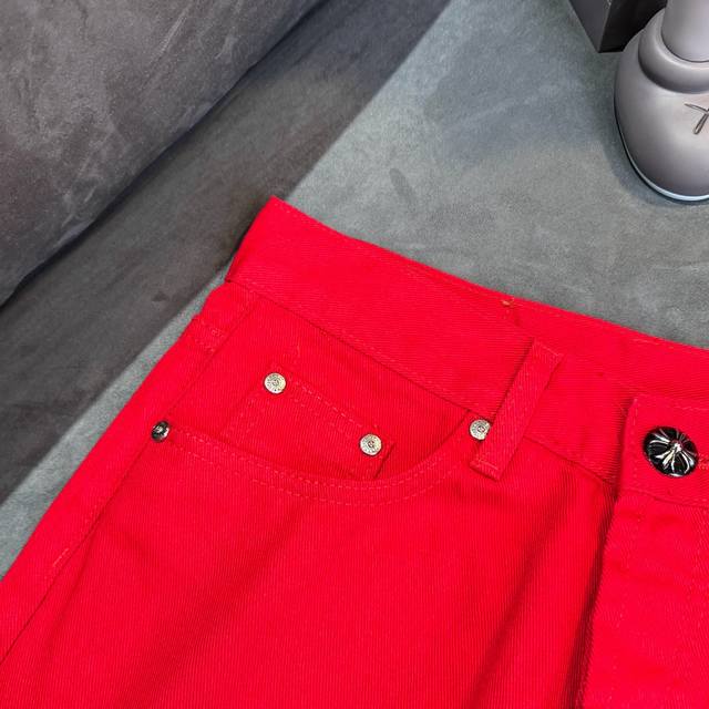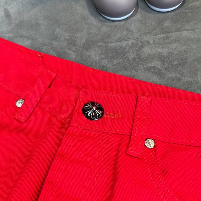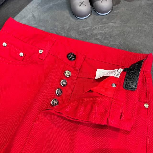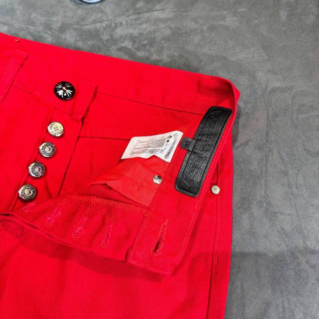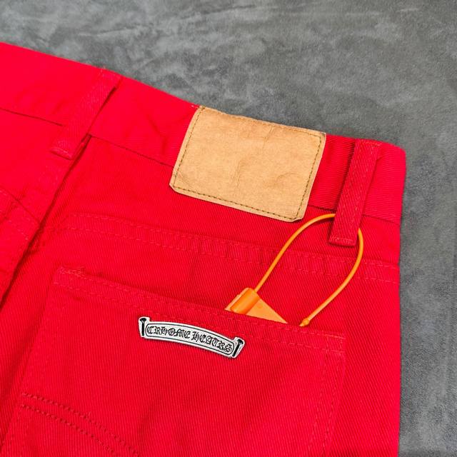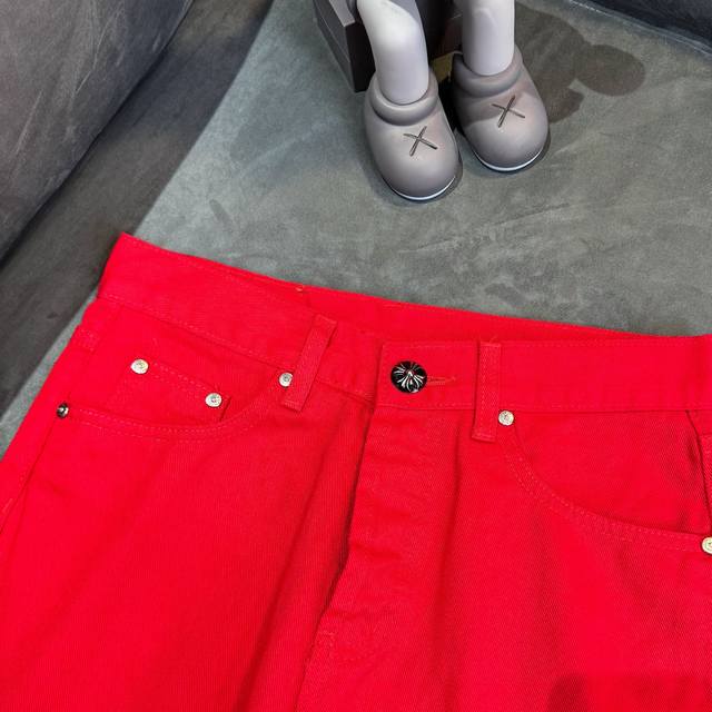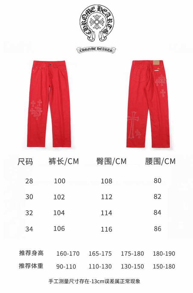Chrome Hearts 2025 New Limited Edition Bull King Dopamine Red Large Cross Leather Couple's Washed Loose Jeans