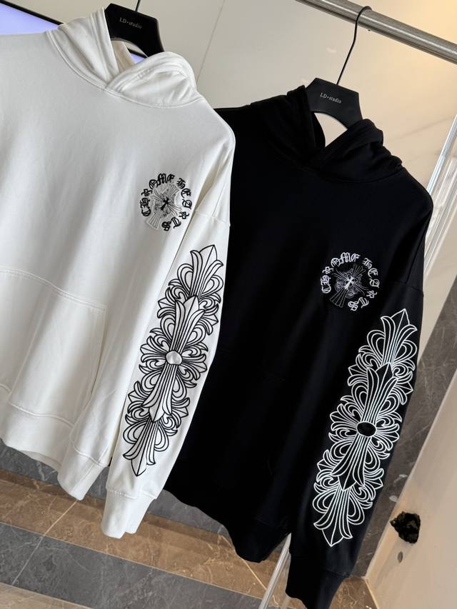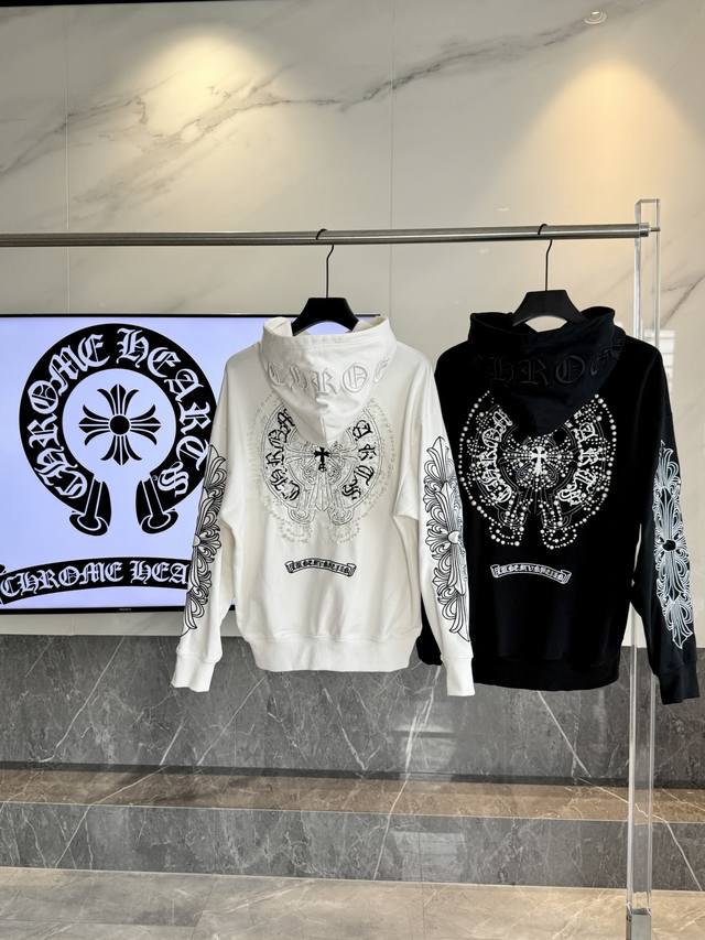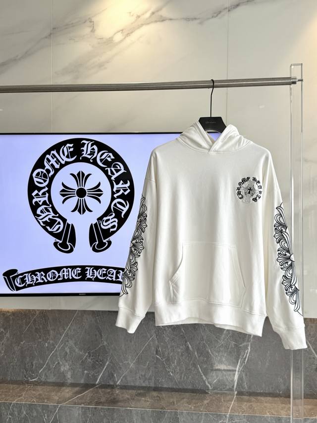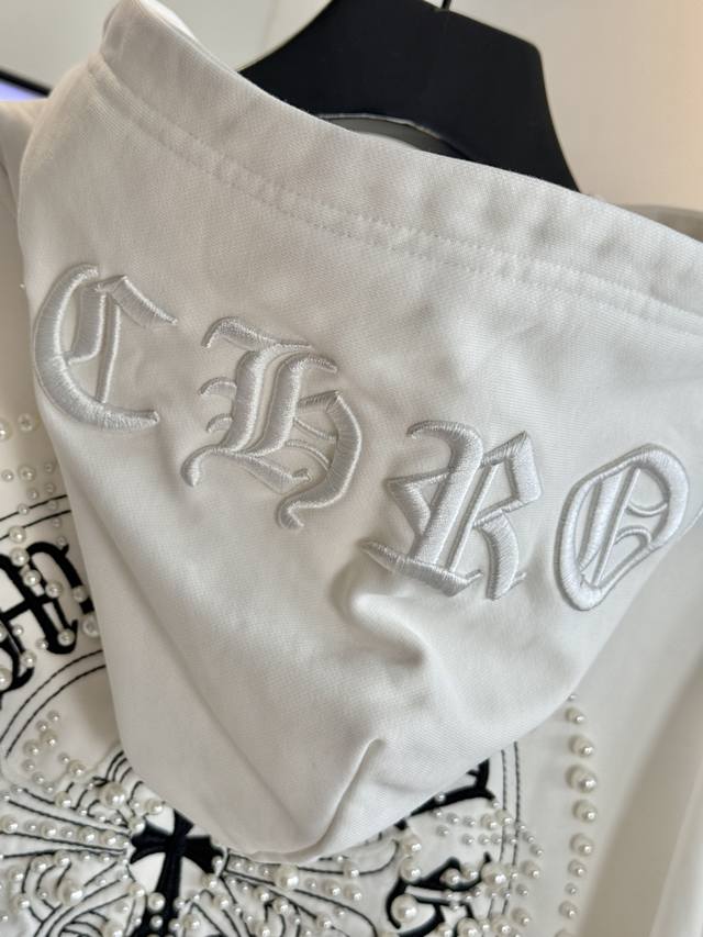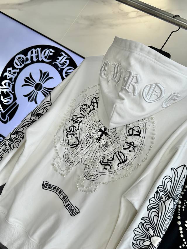 Chrome Hearts 2025 Pearl Cross Embroidery New Original Single-Item High Street Style Hooded Sweatshirt (