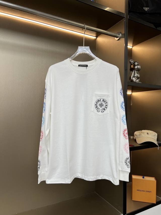 Chrome Hearts 2025Fw New Colorful Horseshoe Pocket Couple Casual Long-Sleeve Shirt - Top Version! Customized 300g Double Yarn Cotton Fabric! Horseshoe Pocket Long-Sleeve Shirt! Accessories: Original molded and authenticated neck label, % silk washing label. Authentic original hangtag, matching lanyard, 3D hang tag, original packaging bag. Craftsmanship: Consistent stitching! Highest version armhole matching technique! Countless pattern making to perfectly reproduce the authentic product! Correct version, unisex, super eye-catching, super good-looking, super stylish! Colors: Black, White. Sizes: S-XL (See picture nine).