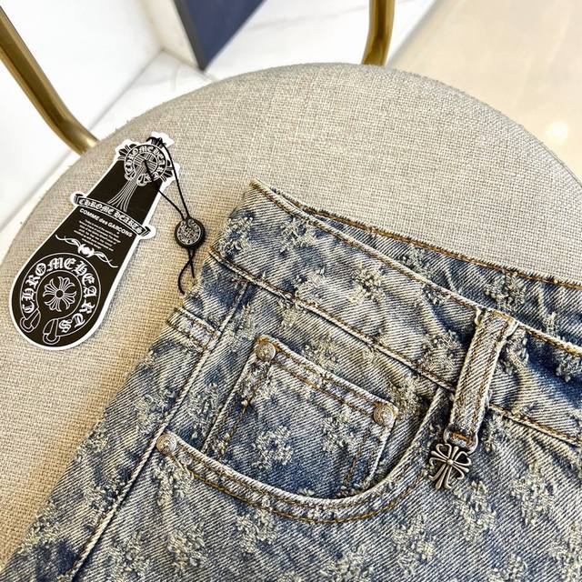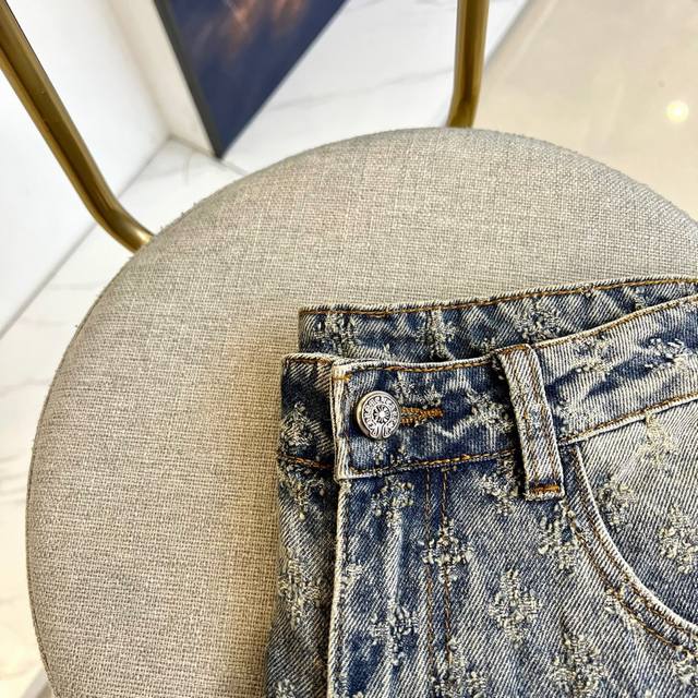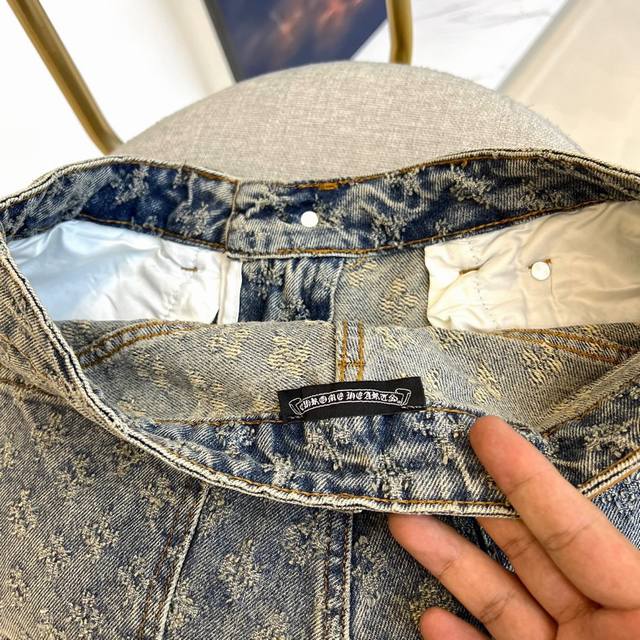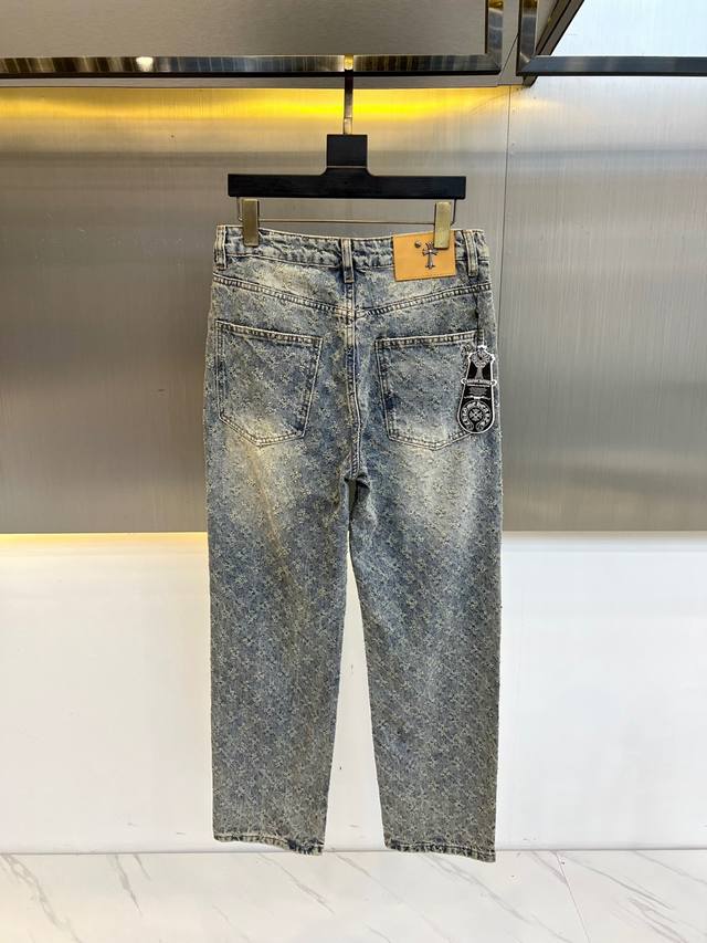 Chrome Hearts 2025Fw Spring/Summer Classic Fashion Stretch Wide-Leg Jeans. These jeans perfectly embody the aesthetic of Chrome Hearts, prioritizing fabric and quality while maintaining its signature design. Brand elements are seamlessly integrated, with the brand lettering on the back pocket adding a touch of design flair. Made from a premium imported 98% cotton, 2% spandex blend denim fabric, the clear and textured twill pattern exudes a high-end feel. Custom-made matte silver hardware buttons and classic metal nameplates on the back pockets, along with the logo decoration on the back pockets, showcase impeccable quality. Effortlessly achieve a high-end, luxurious look with meticulous attention to detail! A must-have for any man's wardrobe, easily creating a stylish street look ! Sizes S-3XL. Please provide your height, weight, and waist measurement when ordering.