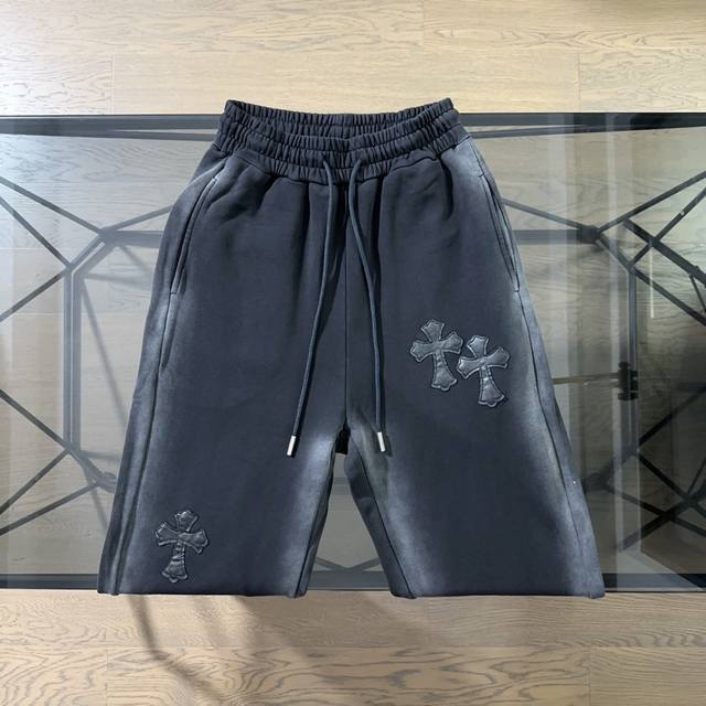 Chrome Hearts 24Fw leather logo embroidered gradient casual trousers (two styles