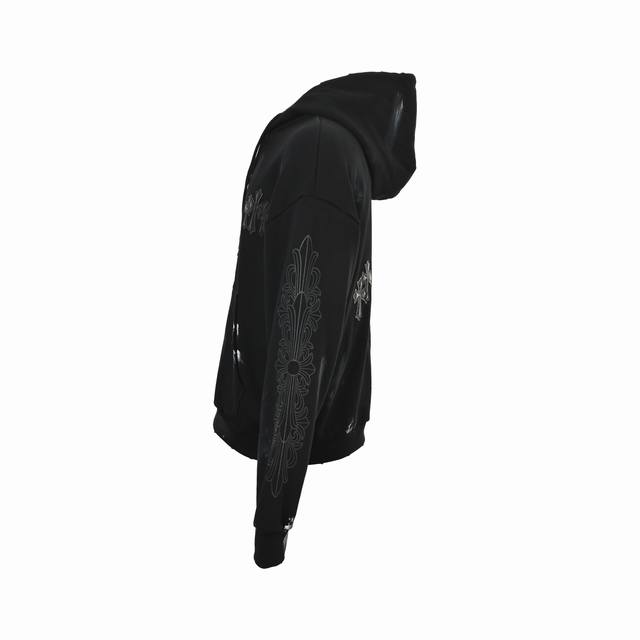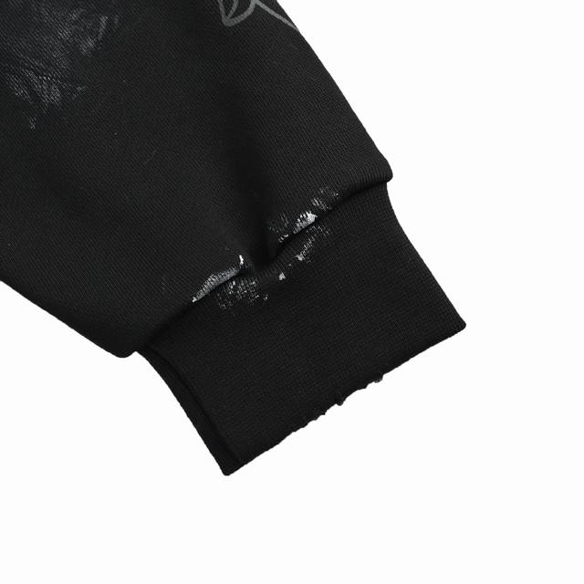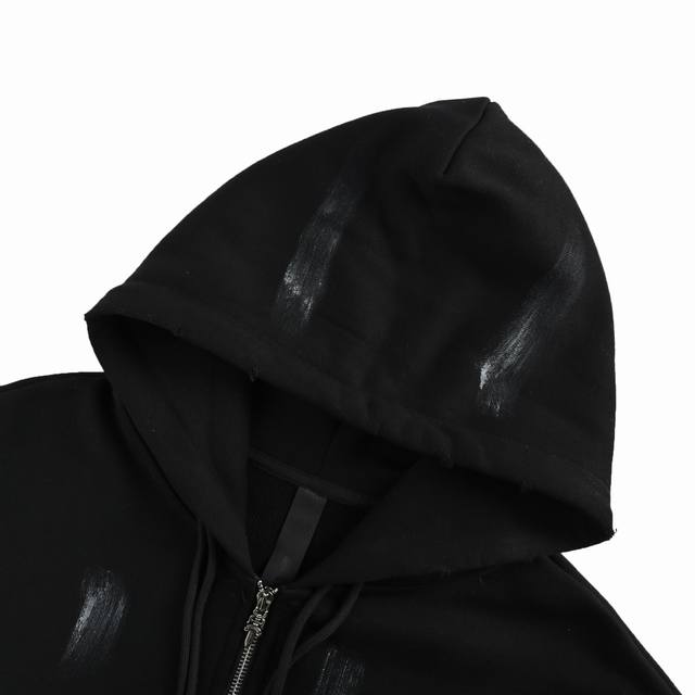 Chrome Hearts 25Fw Heavy-duty Distressed New Graffiti Zipper Jacket Ddd Made with custom-dyed terry cotton sweatshirt fabric, 500g double-ply double-yarn, comfortable to the touch, and crafted with imported knitting needles and combed cotton. Moderate thickness, with a good drape and silhouette, it's incredibly comfortable to wear! Highly forgiving for slightly chubby figures, making you look five pounds lighter! DDD The front, cuffs, and back chest are printed with direct-jet environmentally friendly ink using mechanized printing technology. High precision printing, registration accuracy up to