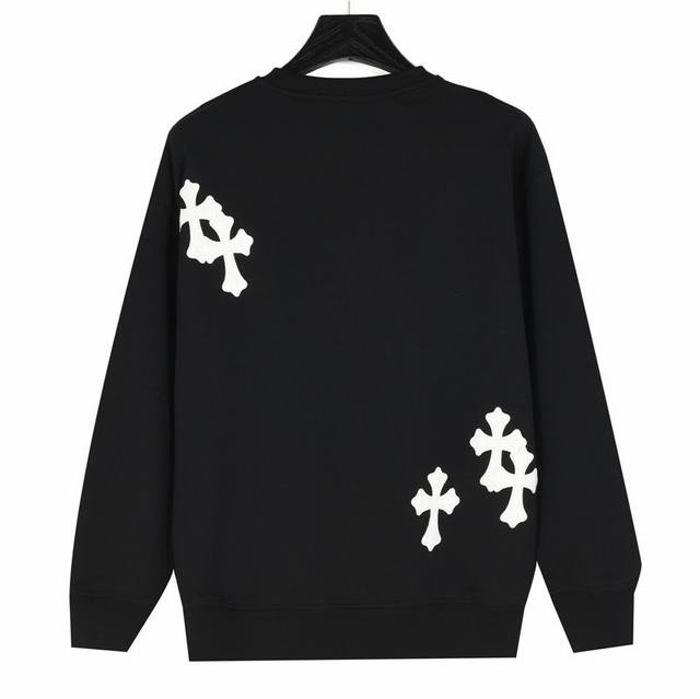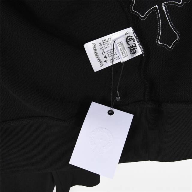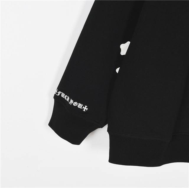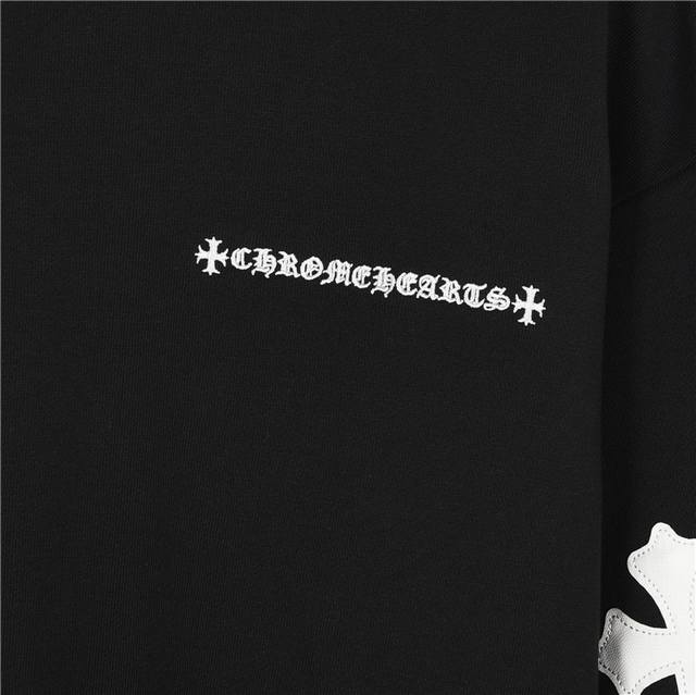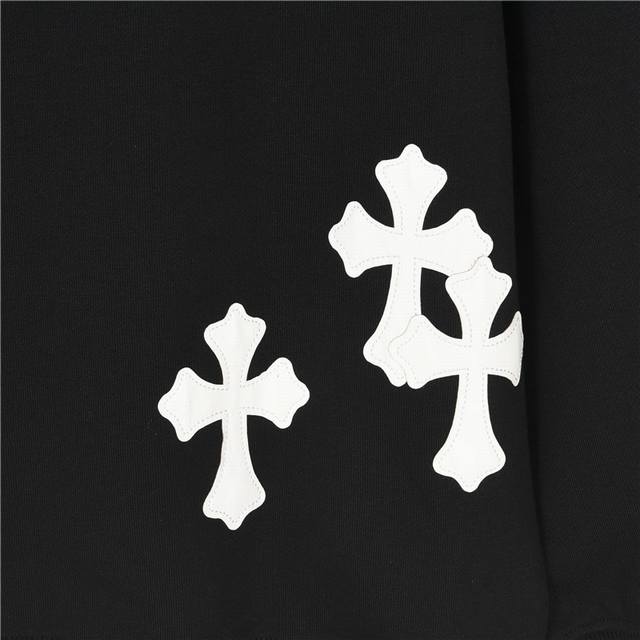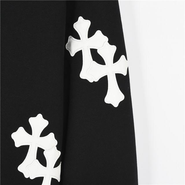 Ch24 Fall/Winter new leather cross patch sweatshirt. Chrome Hearts embodies the religious spirit of the Middle Ages, so the cross pattern is essential. The three-dimensional leather patches are sewn onto the cross pattern throughout the garment.