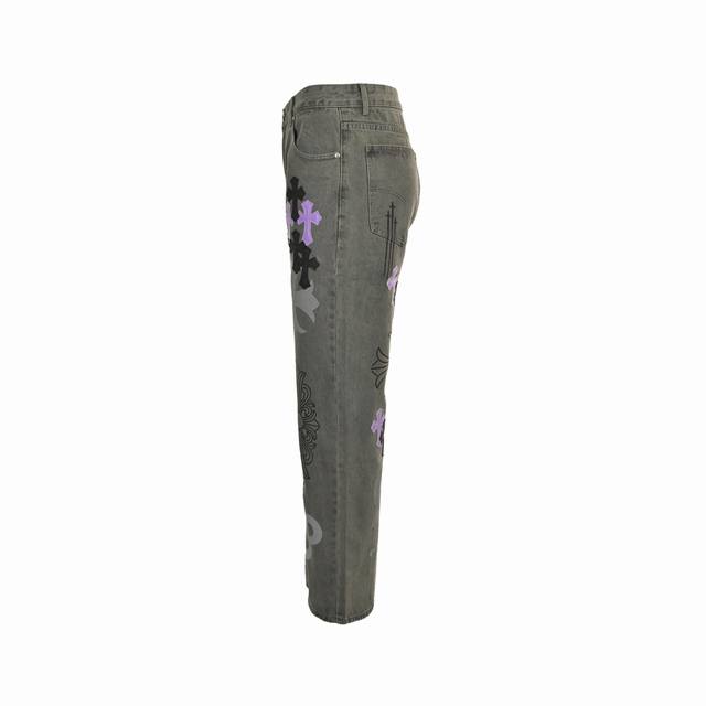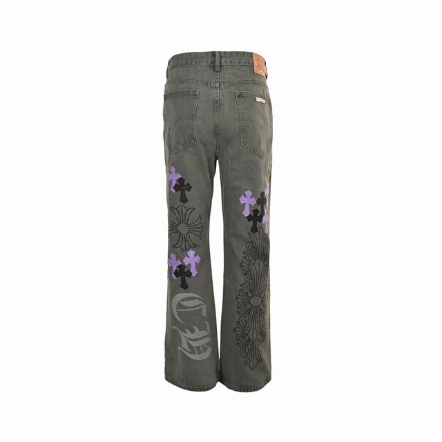 Chrome Hearts 25Fw Purple Cow Spray-painted Graffiti Leather Jeans