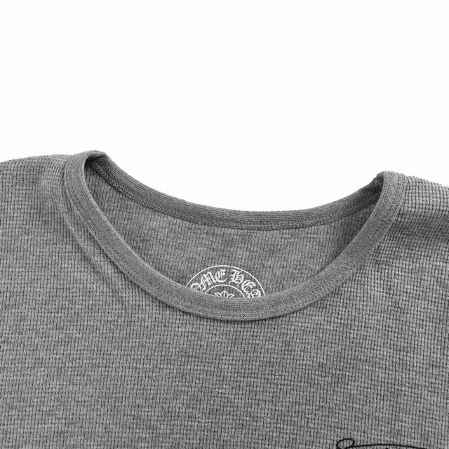 Chrome Hearts 25Fw Waffle Long-Sleeve T-Shirt. The fabric undergoes a full-body washing process to prevent shrinkage. It uses the same four-needle, six-thread construction as the original. Exclusive high-quality cut, easily compared to the original. This Chrome Hearts T-shirt features a 3D three-dimensional cut, a neutral straight-leg slim fit. Unlike the exaggerated oversized style of the original, it's not a tight-fitting cut with a cinched waist and sleeves. Overall, it's close-fitting but not tight, naturally conforming to the body's contours. Size: S-XL.