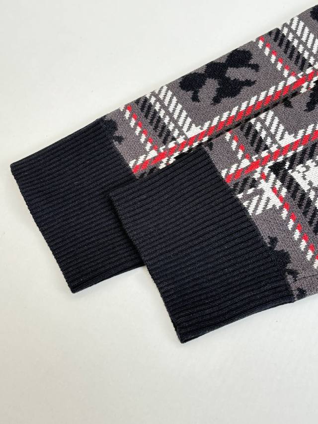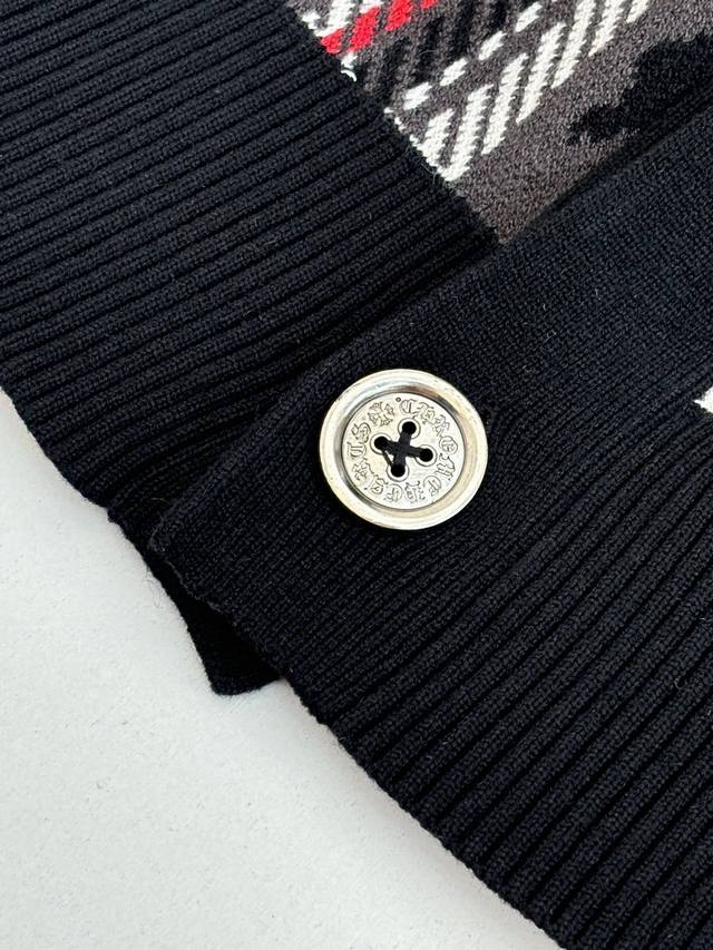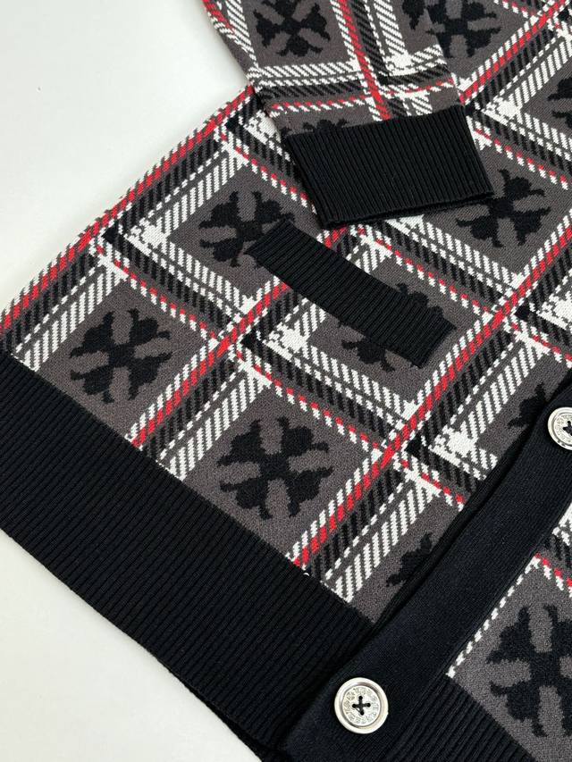 Chrome Hearts* 25Ss Cashmere Check Cardigan Sweater DDD Made with German imported Stolt knitted leather patch, genuine sheepskin embossed and cut, antique silver hardware with distressed oxidation treatment DDD Size: SML DDD