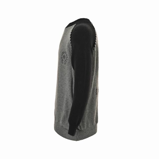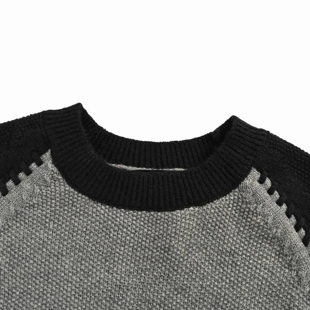 A color-blocked raglan round neck knit sweater with a unique knit texture, soft and skin-friendly, featuring classic embroidered patterns on the front and back. Retro and stylish. The color-blocked raglan sleeves and chunky knit detailing at the seams make it great for wearing alone or layering! The loose fit is slimming! This fashionable color-blocked sweater features a vibrant interplay of colors, creating a layered look that is both warm and flattering. Whether worn alone or as a base layer, it easily complements various styles, showcasing your individual charm. The color-blocked raglan sleeves have a wide, shoulderless design with exquisite embroidery on the front and back, giving it a relaxed, street-style vibe. It looks great worn alone or as a base layer! The sleeves feature a color-blocked design with stitching, and the round neckline beautifully frames the neck and flatters the face! Made from a wool blend knit fabric, it's soft, comfortable, and warm. The color-blocked design and loose fit are flattering and slimming, making it incredibly easy to wear! A basic, versatile, and classic style! Black and white is a versatile combination! So sophisticated black and gray! Couples, get yours! Color: Black/Gray Size: SL