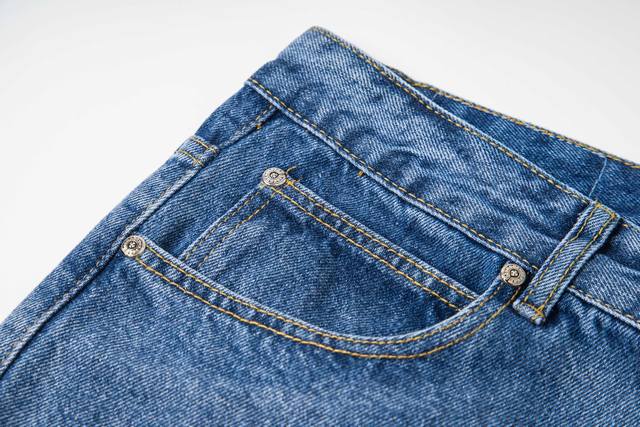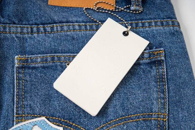 . All jeans are washed, then disassembled, and hand-assembled with sheepskin cross-leather. The entire process is so elaborate that it's hard to describe.