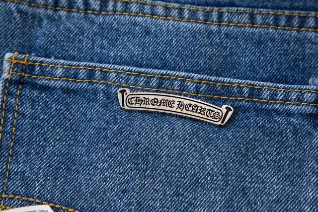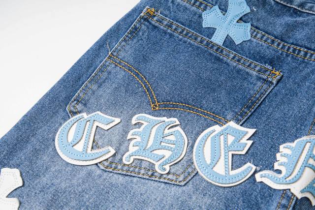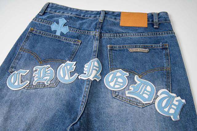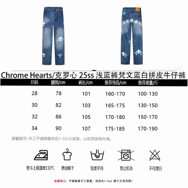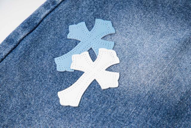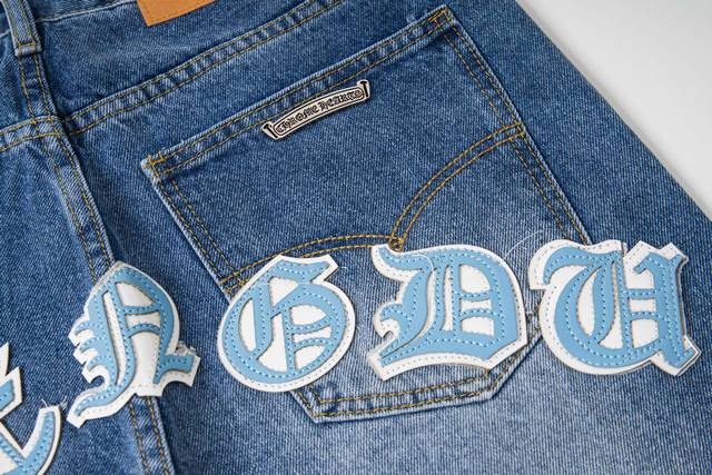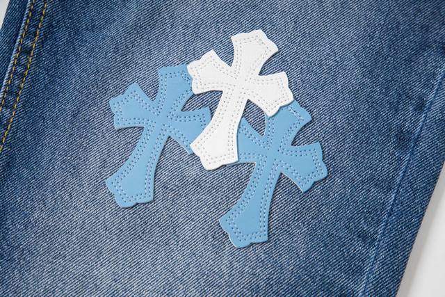 Chrome Hearts 25Ss Light Blue Jeans with Sanskrit Blue and White Leather.