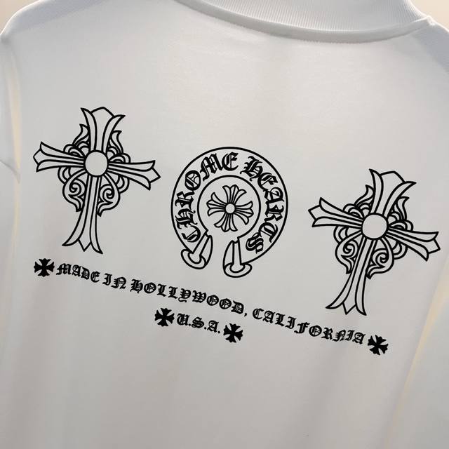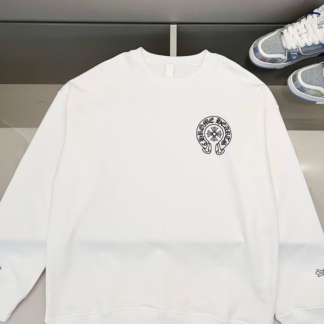 Chrome Hearts 420g 100% Cotton Crew Neck Sweatshirt. Features a cross and Sanskrit letter logo printed on the front and back using a foam printing process. Officially 1:1 replica. Stylish, versatile, and trendy. Made with original quality washed fabric. Includes hangtag, neck label, and wash label. Colors: Black, White. Sizes: XS-L.