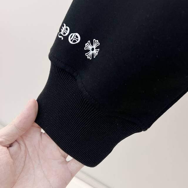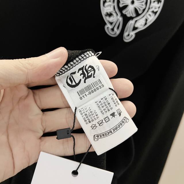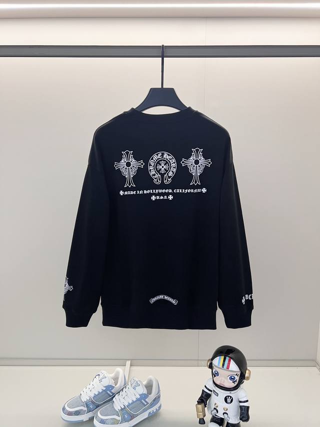 Chrome Hearts 420g 100% Cotton Crew Neck Sweatshirt. Features a cross and Sanskrit letter logo printed on the front and back using a foam printing process. Officially 1:1 replica. Stylish, versatile, and trendy. Made with original quality washed fabric. Includes hangtag, neck label, and wash label. Colors: Black, White. Sizes: XS-L.