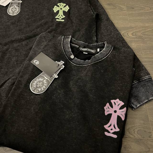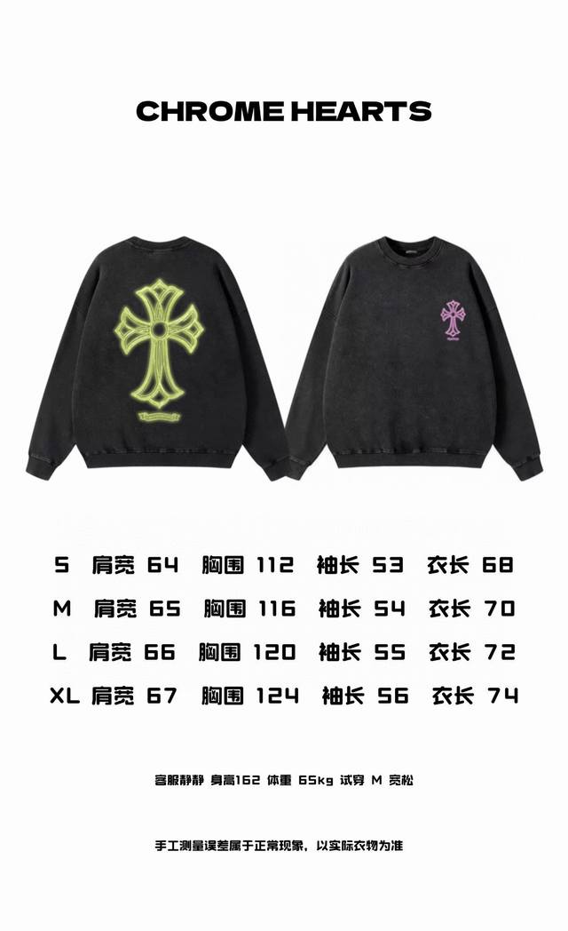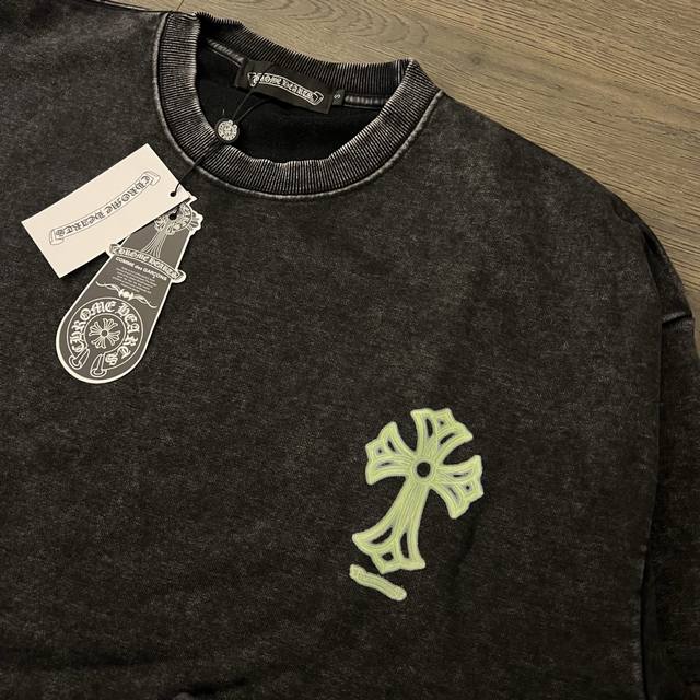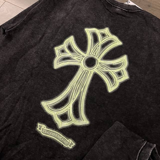 Chrome Hearts Ch Chrome Hearts Fluorescent Cross Print Distressed Couple Crew Neck Sweatshirt - Top Version