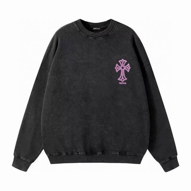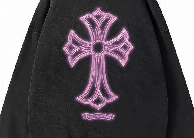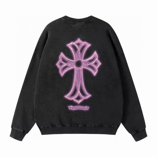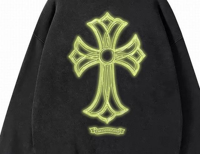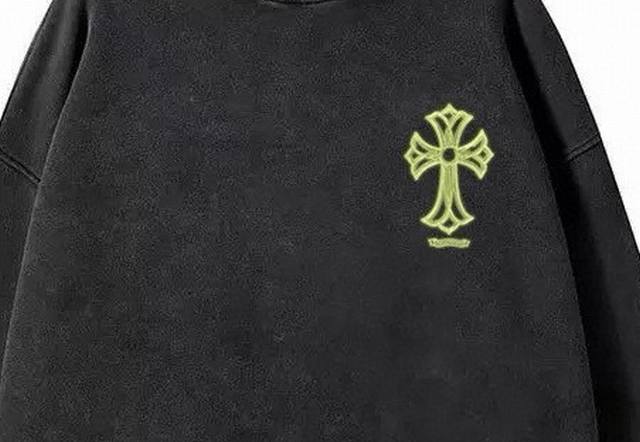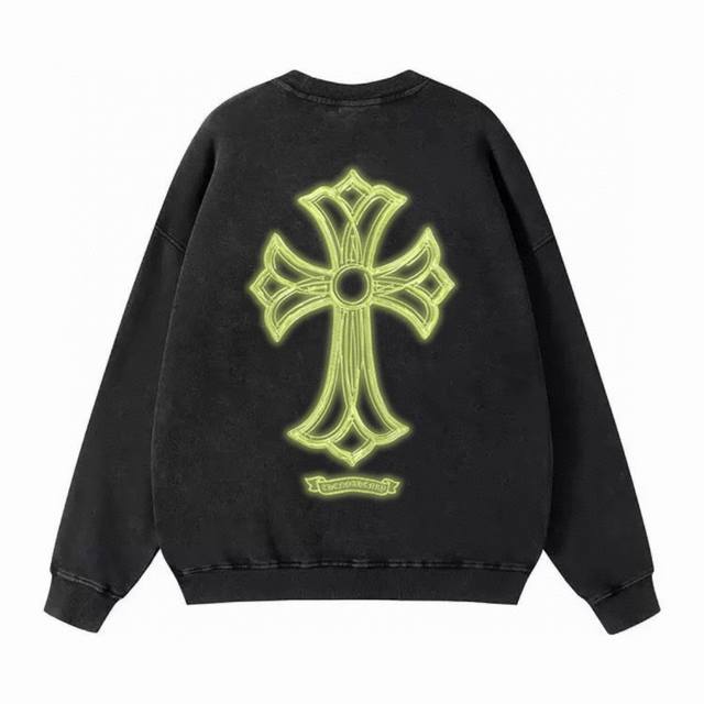 Chrome Hearts Ch Chrome Hearts Fluorescent Cross Print Distressed Couple Crew Neck Sweatshirt - Top Version