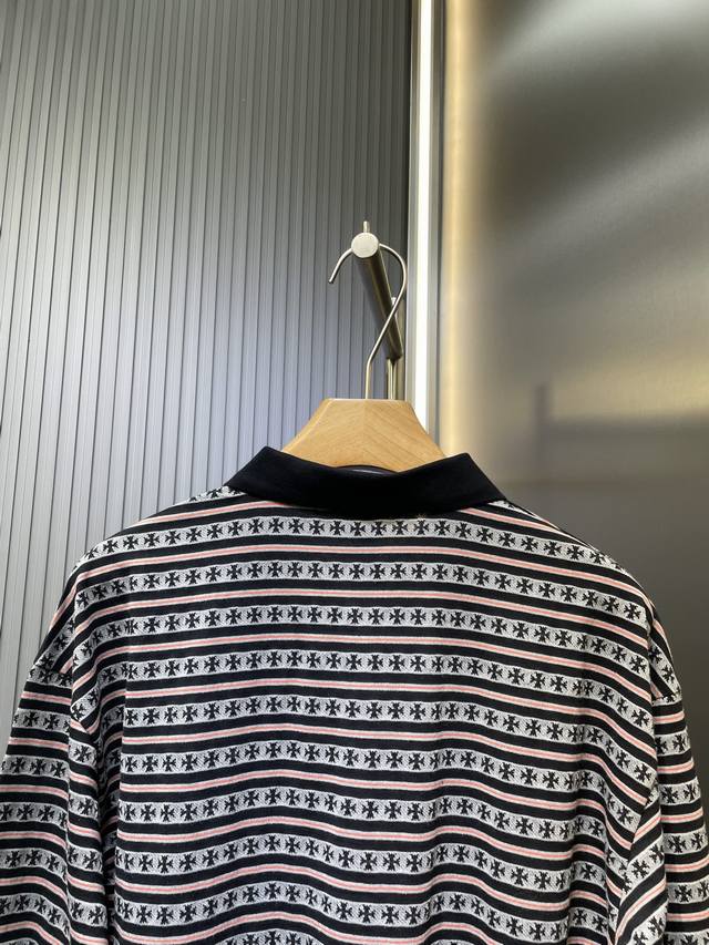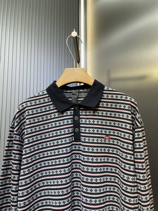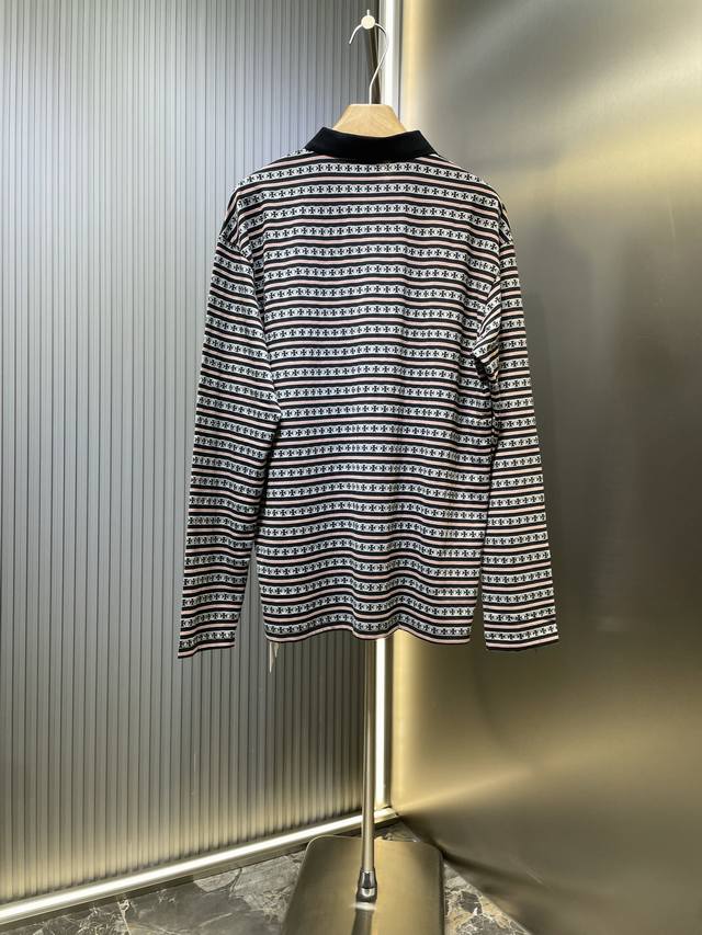 Orange cross Sanskrit monogram striped lapel Lo long sleeve