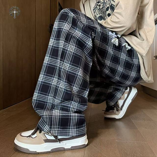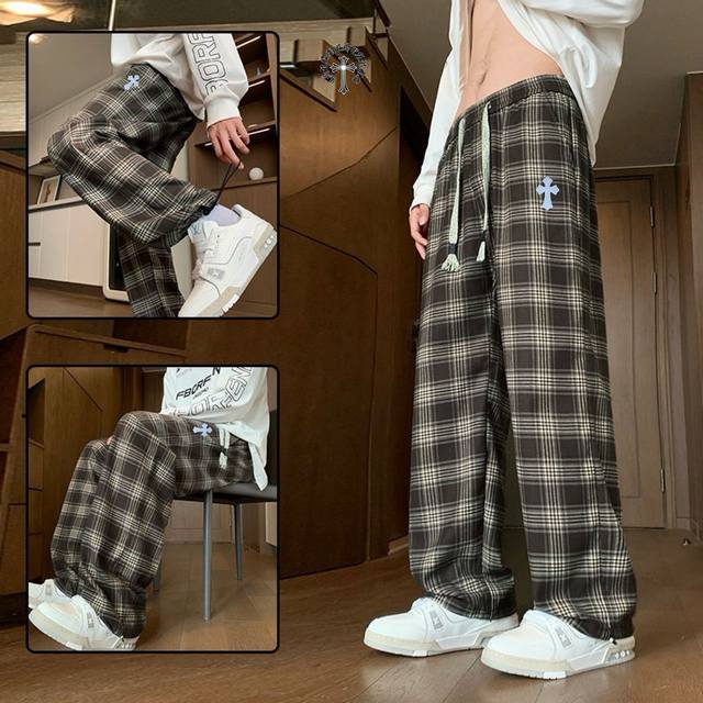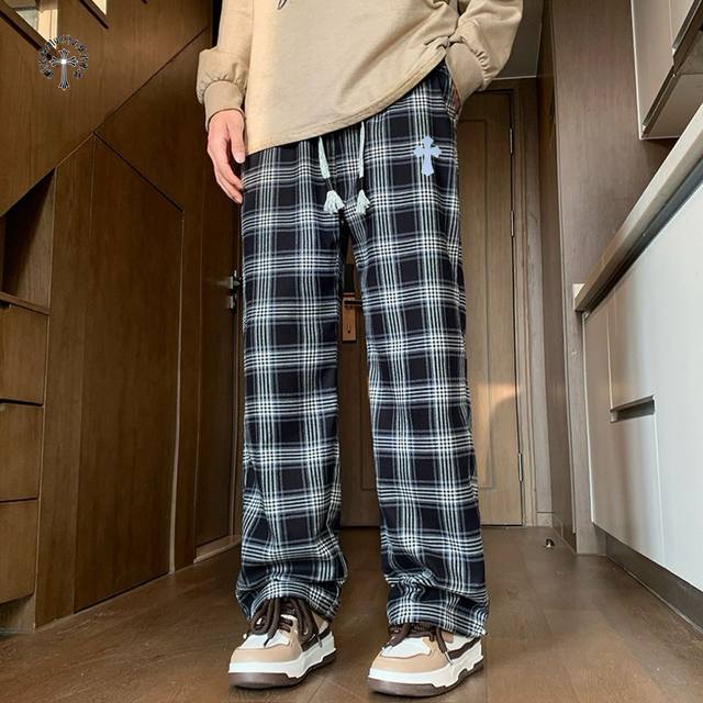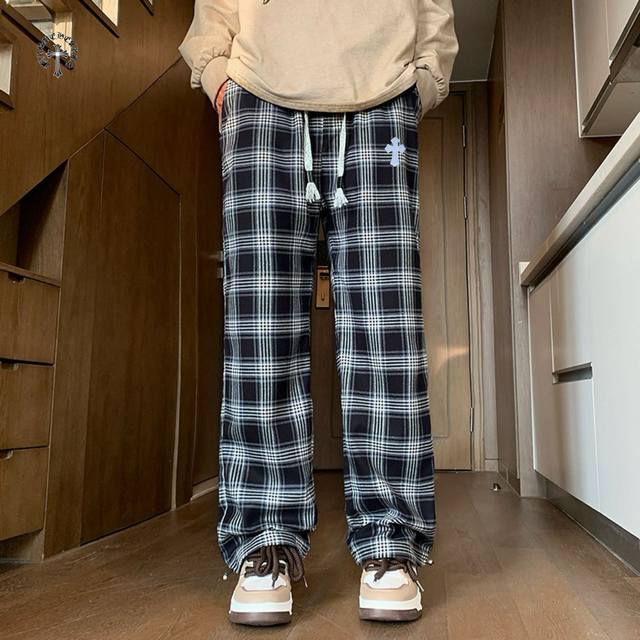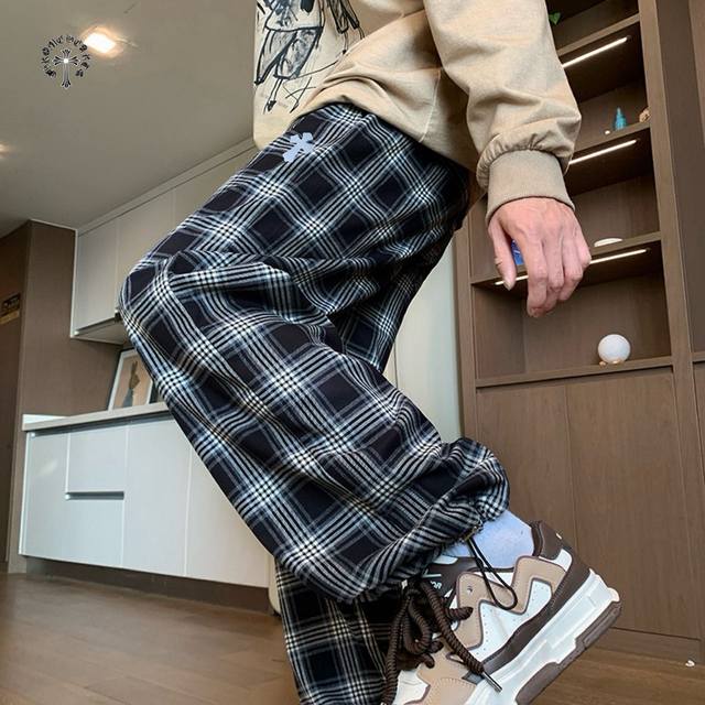 Chrome Hearts Chrome Hearts Overseas Edition 25Ss New Two-Color Maillard Plaid Casual Sports Pants!