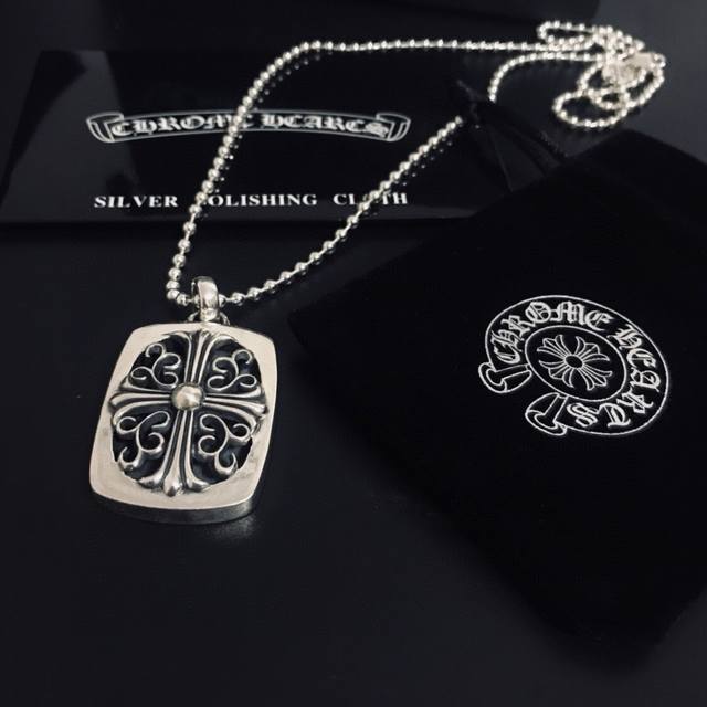 Chrome Hearts Cross Palace Flower Square Pendant Necklace with Complete Packaging