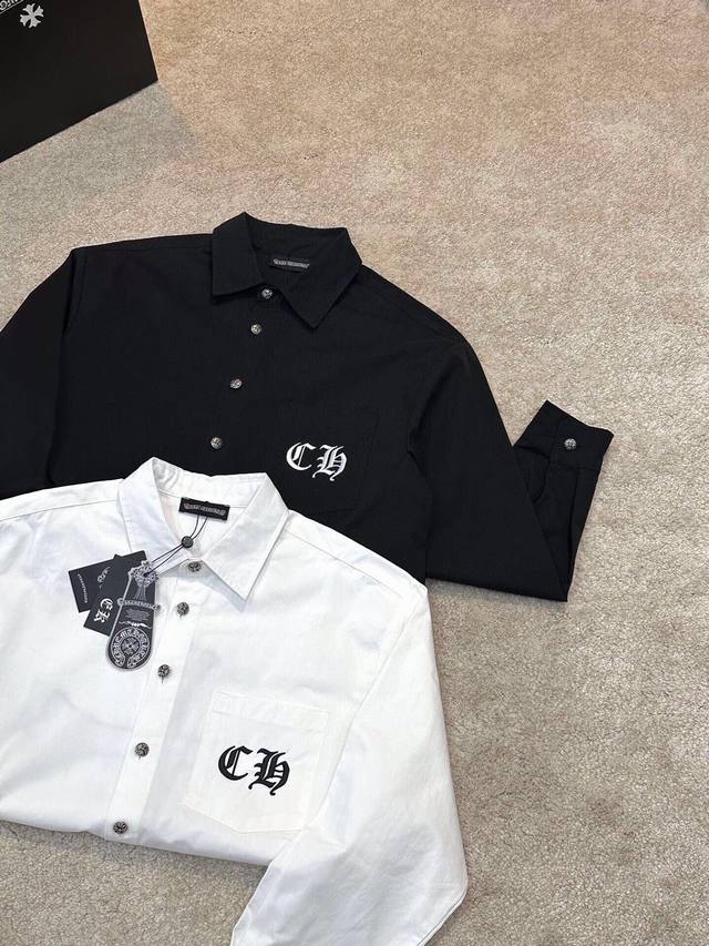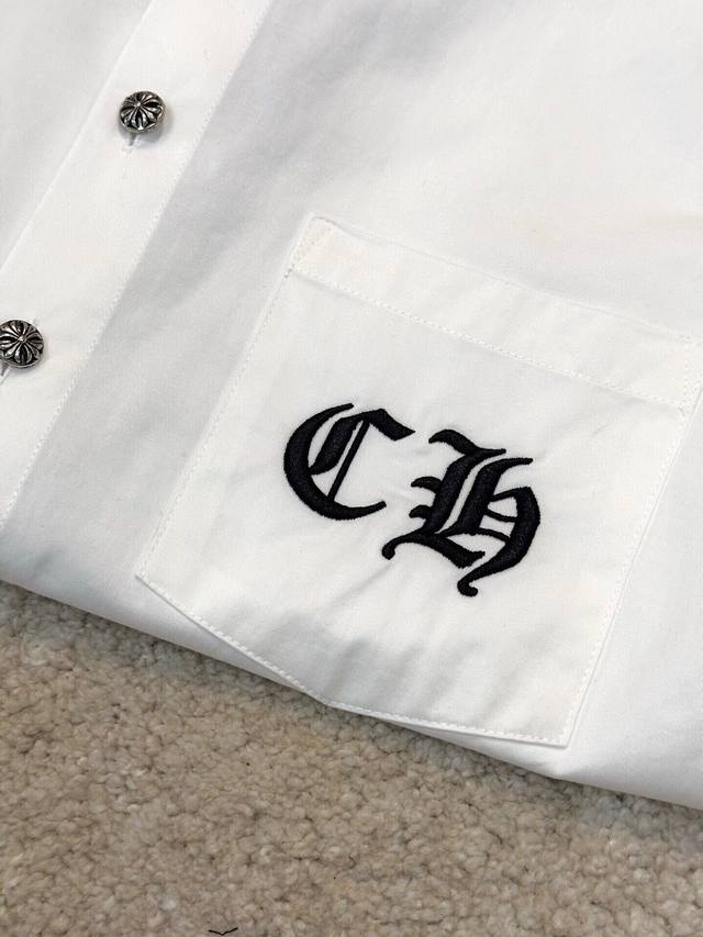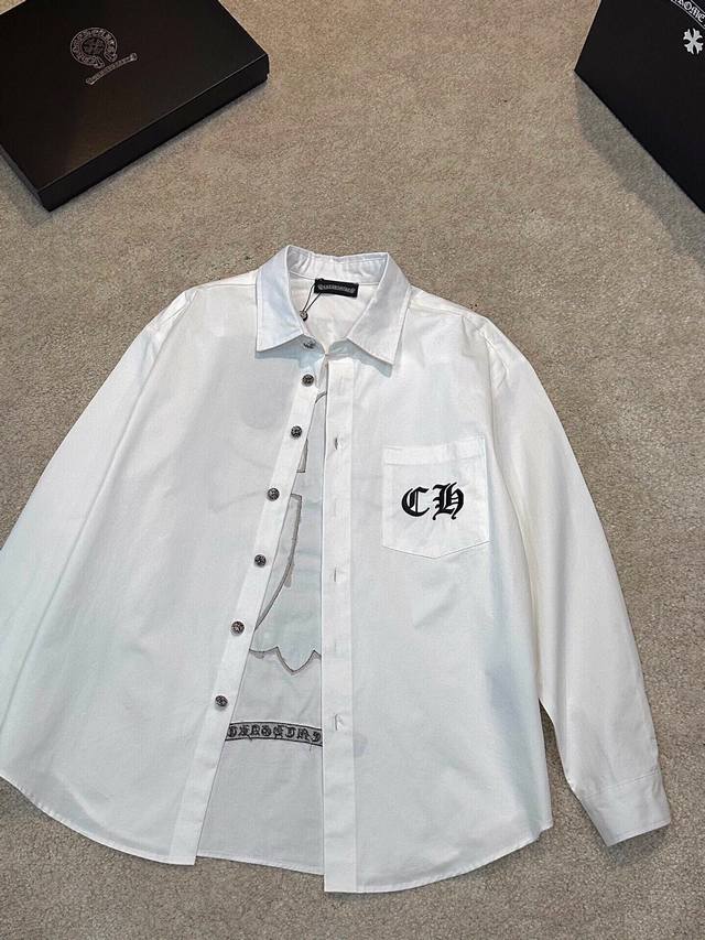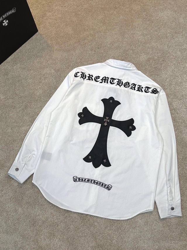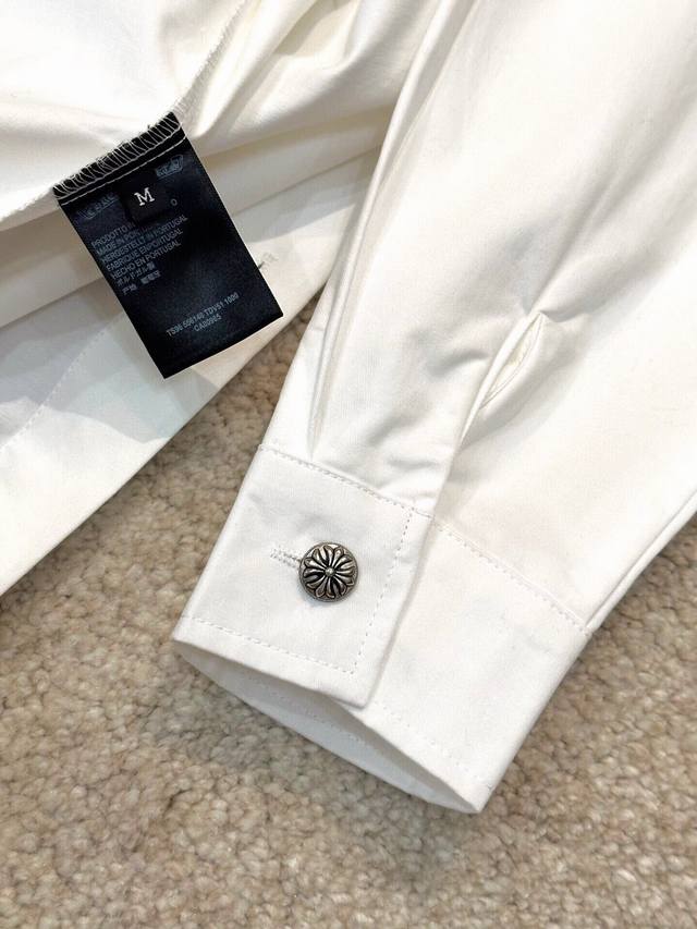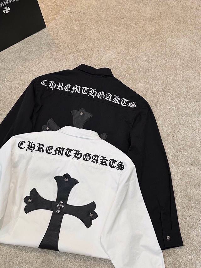 Chrome Hearts Cross-Panel Embroidered Shirt Jacket, Os style, unisex! Made of twill cotton fabric! Clear and smooth texture, wrinkle-resistant and colorfast! The embroidery process is complex and repetitive, requiring extremely precise embroidery machines with a spacing of 45cm! Too large or too small a spacing won't work! All hardware is engraved and cast, requiring a huge amount of material