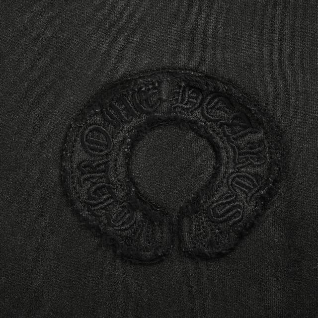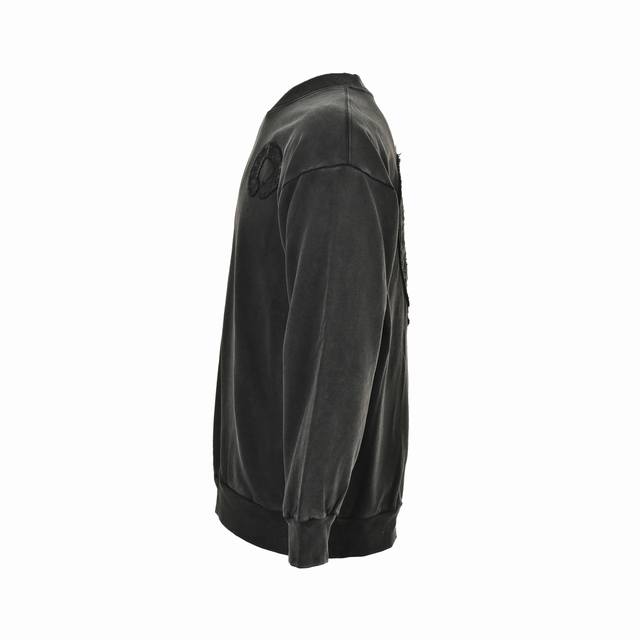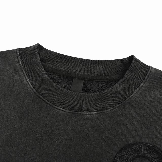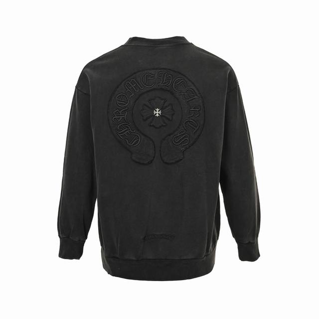 Chrome_Ch Autumn/Winter American Acid Washed Distressed Laser Burnished Applique Embroidery Crew Neck Sweatshirt Textured Pattern Trendy Brand Original Fabric Laser Burnished Applique Embroidery Letter Embroidery Metal Cross Embellishment Loose Hem with Double Layer Fabric for Good Finish and Exquisite Overlocking