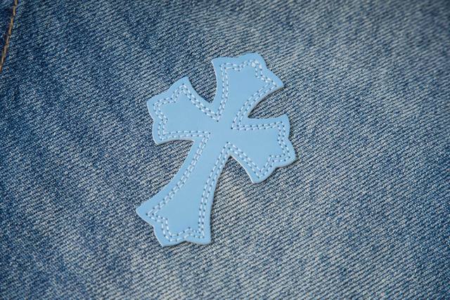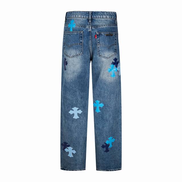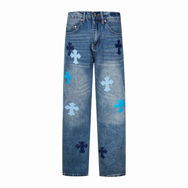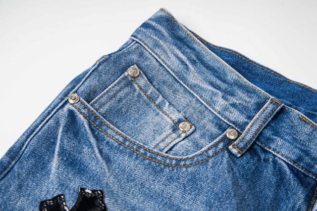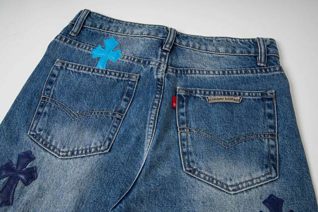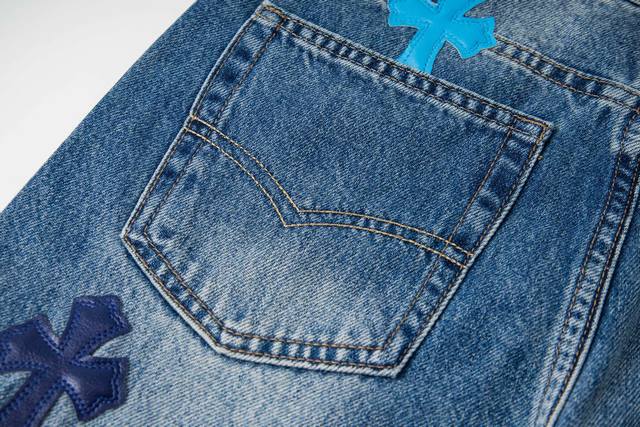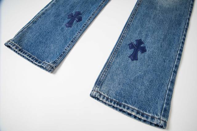Chrome Hearts Flared Light Blue Multi-Leather Hot Selling Jeans Ddd Ch Jeans all require finished washing before being disassembled, hand-stitched with sheepskin cross leather, and then pieced together to complete the entire garment. The process is so complex it's hard to describe. Ddd Patchwork cross flower embellishment, high-waisted washed jeans!! Absolutely high-end luxury product, a god-level item, super popular product, top-notch heavy-duty craftsmanship, an unmissable street style must-have Ddd Hardware Zp customization, thick fabric, soft and breathable after washing, custom small leather label design, ingenious details, simple and generous, exquisite workmanship, neat stitching throughout the pants, attention to detail! Ddd So cool, unisex trendy style that can be easily worn by both men and women! Ddd Style number: 1796# Ddd Color: Blue Ddd Size: 28 30 32 34 36 DDD