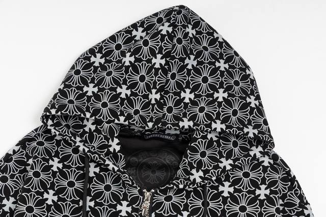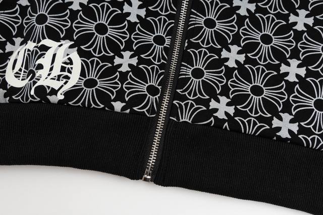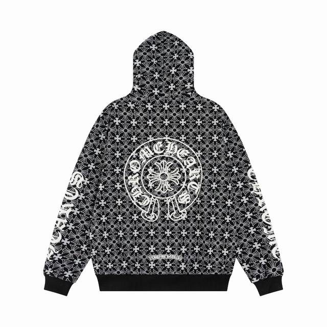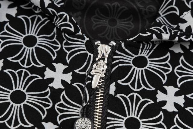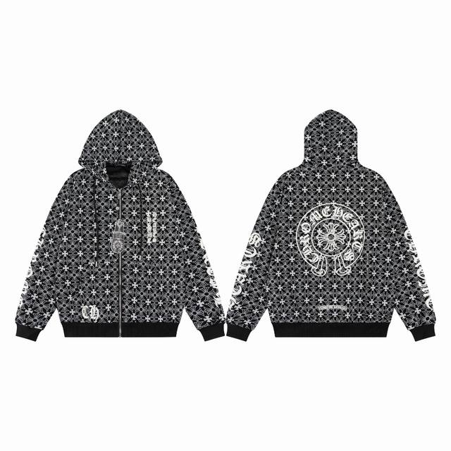 Chrome Hearts Hooded Sweatshirt 23Fw New All-over Print Sanskrit Open-front Sweatshirt Features an all-over subtle print for a mysterious feel. Embroidered Sanskrit on the chest with a metal zipper. Classic Sanskrit print on both arms. Classic horseshoe print on the back. Overall sophisticated and versatile, unisex style. Sizes: S-XL
