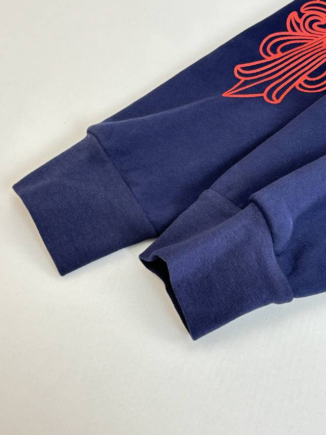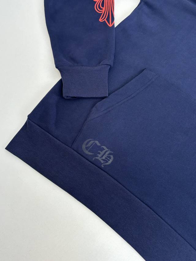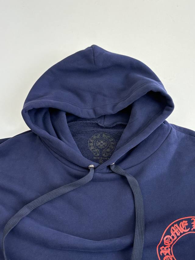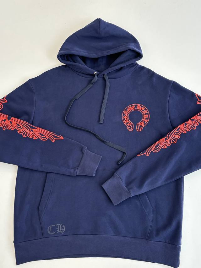 Chrome Hearts* Horseshoe Print Hooded Sweatshirt DDD Made of Australian Soft Satin Technical Cotton with Plastisol Printing. The print has been modified three times using film screens. The fabric has been treated with a water-based coating for a better feel and texture, making it less prone to deformation, shrinkage, and fading. DDD Size: SML XL DDD