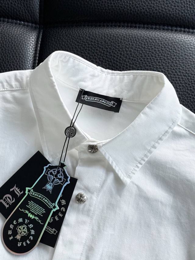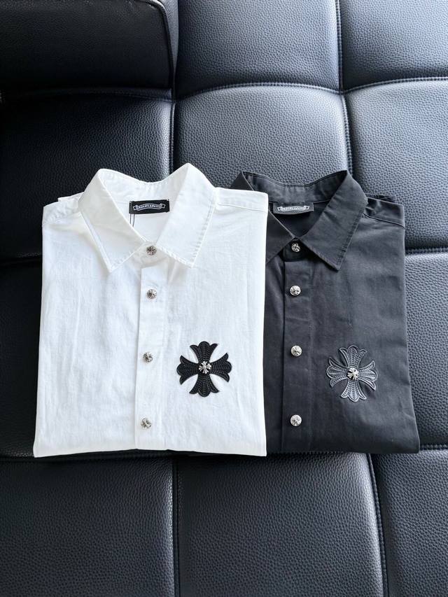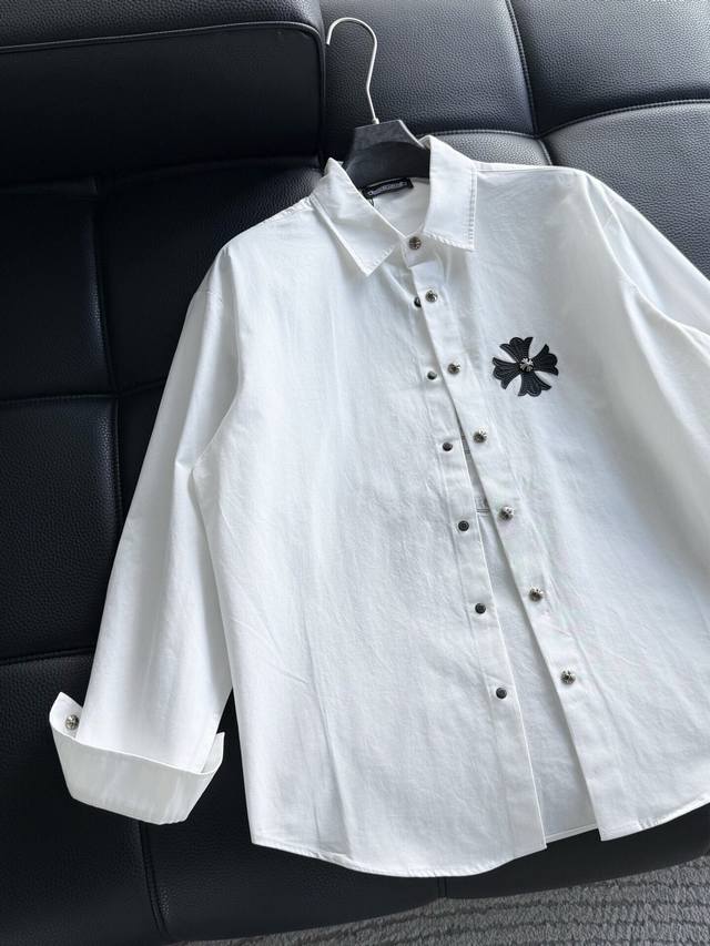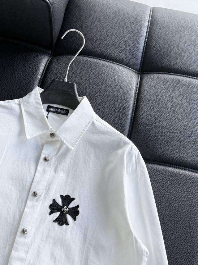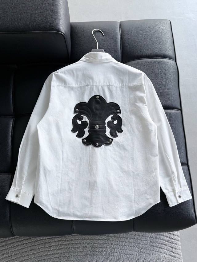 Chrome Hearts Leather Cross-Panel Embroidered Shirt Jacket, Os Style, unisex! Made of twill cotton fabric! Clear and smooth texture, wrinkle-resistant and colorfast! The embroidery process is complex and repetitive, requiring extremely precise embroidery machines with a spacing of 45cm! Too large or too small a spacing won't work! All hardware is engraved and cast, requiring a huge amount of material