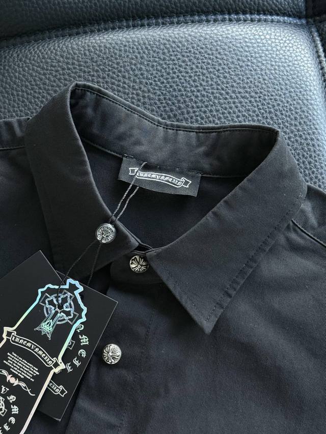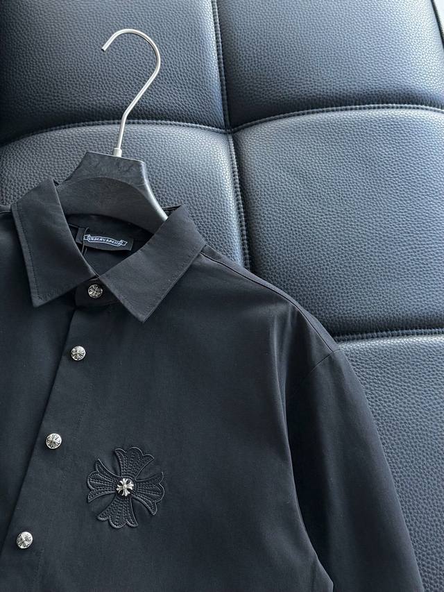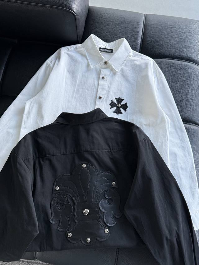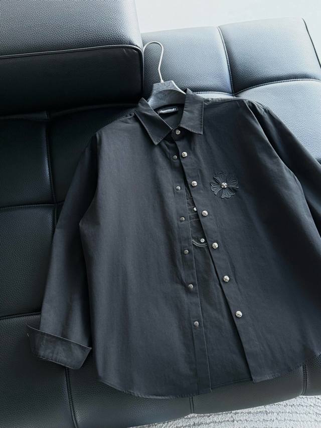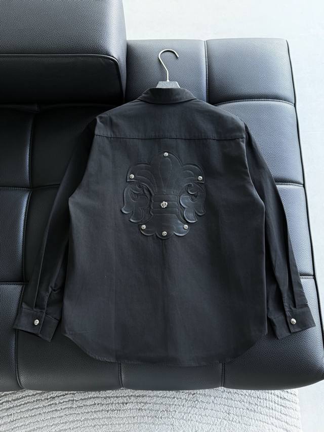 Chrome Hearts Leather Cross-Panel Embroidered Shirt Jacket, Os style, unisex! Made of twill cotton fabric! Clear and smooth texture, wrinkle-resistant and colorfast! The embroidery process is complex and repetitive, requiring extremely precise embroidery machines with a spacing of 45cm! Too large or too small a spacing won't work! All hardware is engraved and cast, requiring a huge amount of material