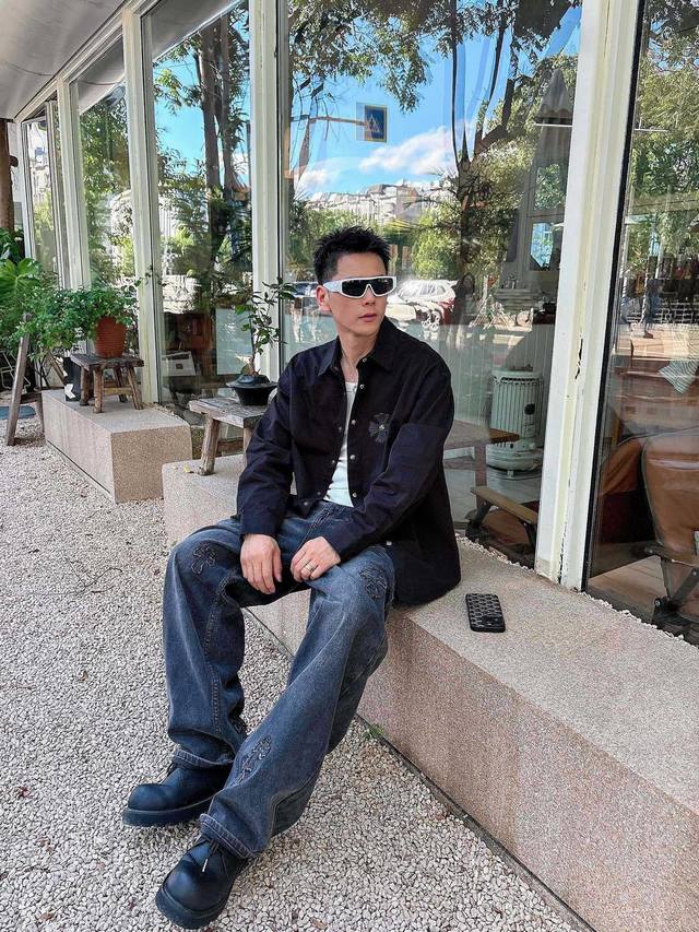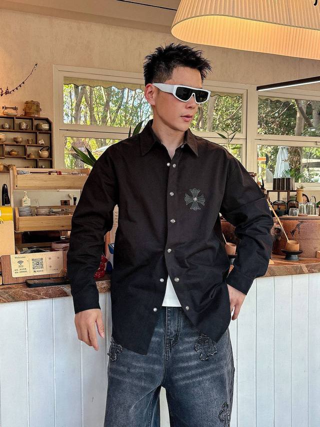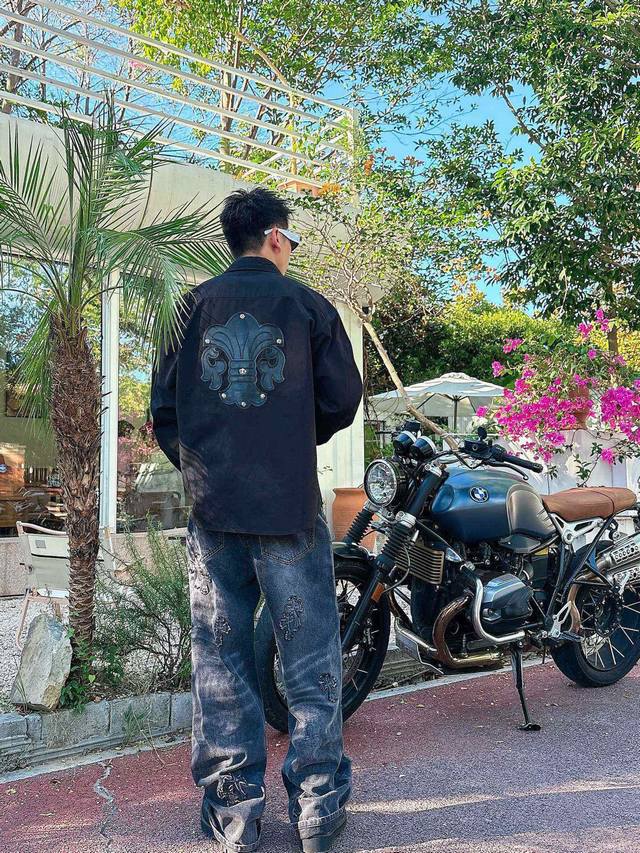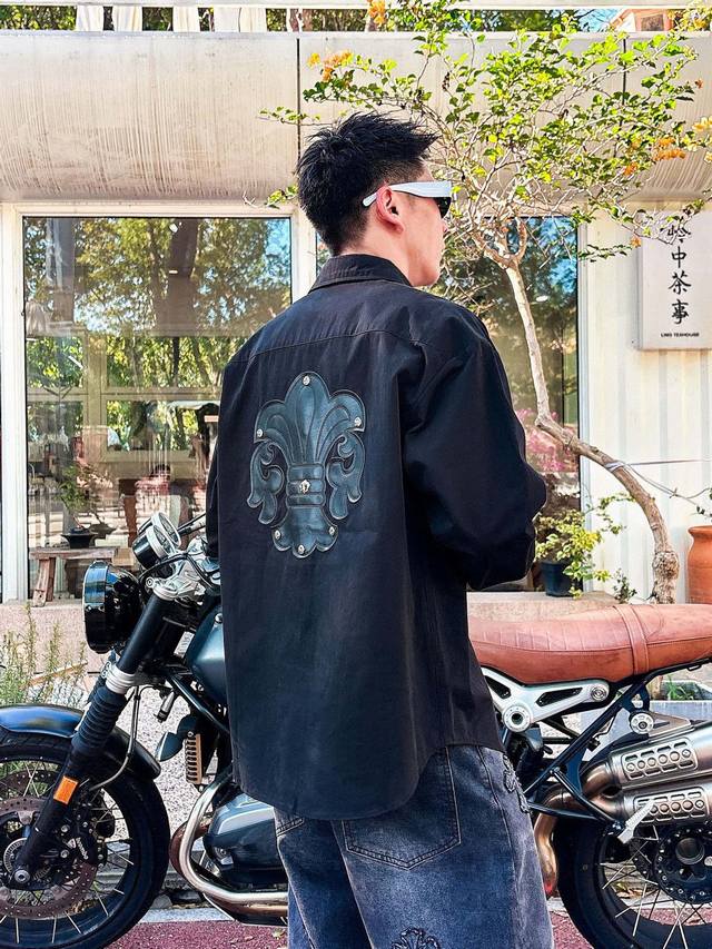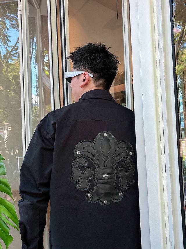 Chrome Hearts Leather Cross-Panel Embroidered Shirt Jacket, Os style, unisex! Made of twill cotton fabric! Clear and smooth texture, wrinkle-resistant and colorfast! The embroidery process is complex and repetitive, requiring extremely precise embroidery machines with a spacing of 45cm! Too large or too small a spacing won't work! All hardware is engraved and cast, requiring a huge amount of material