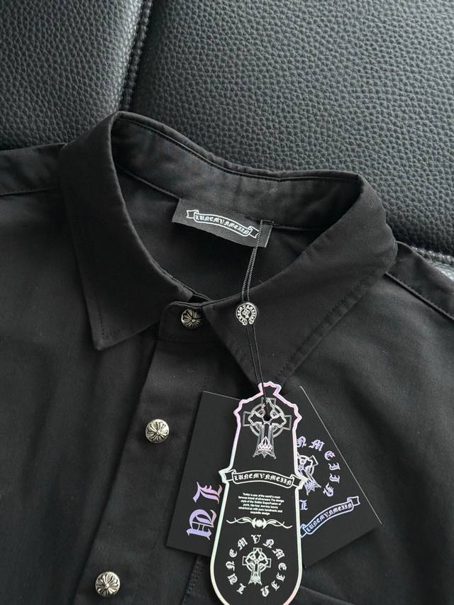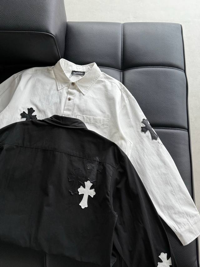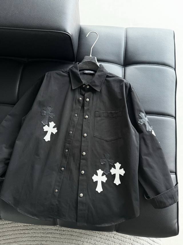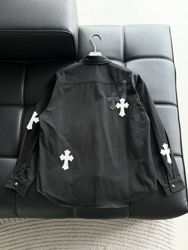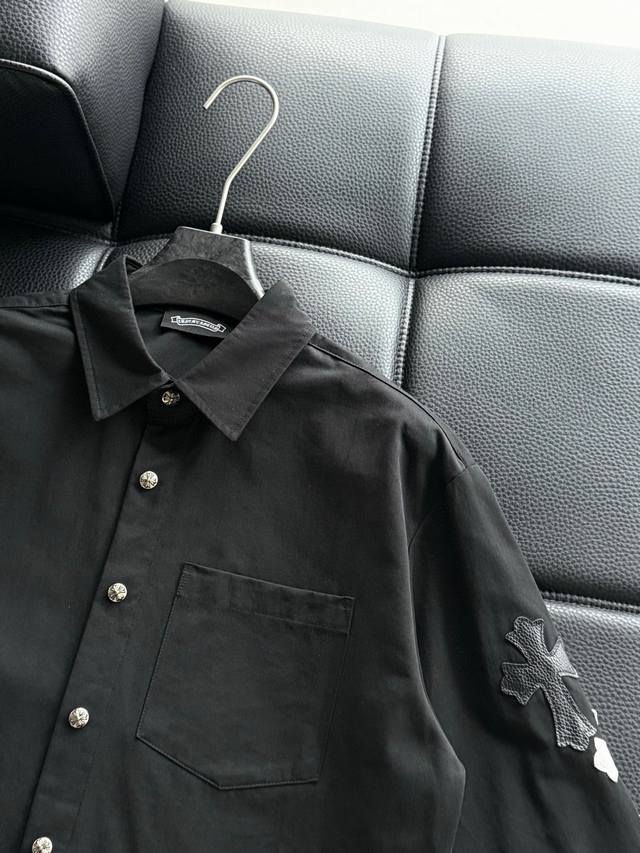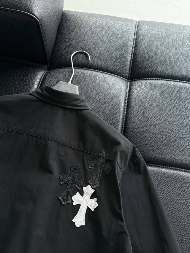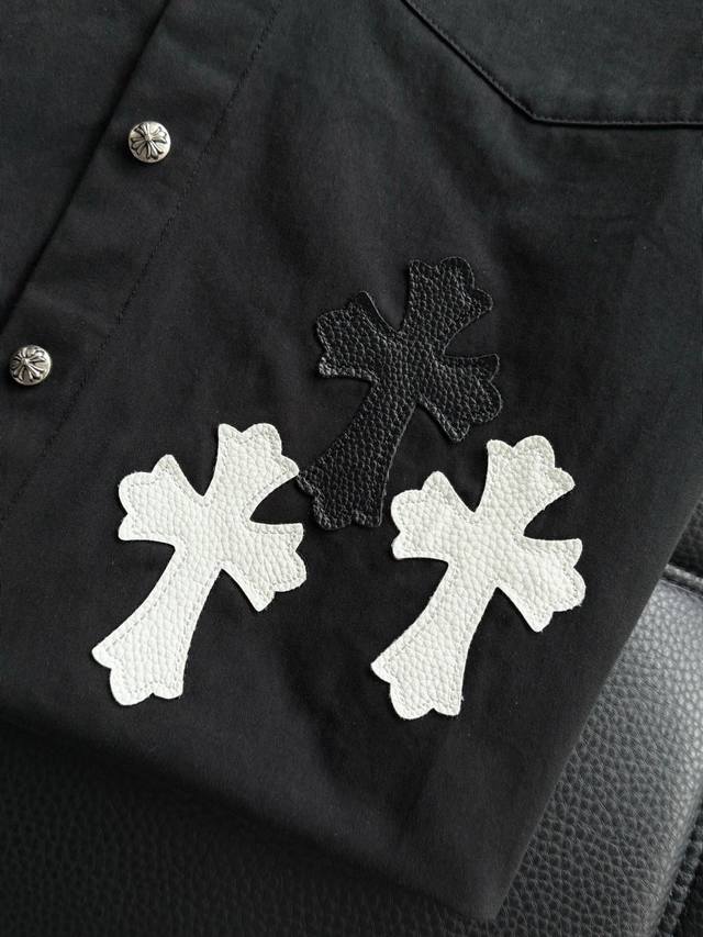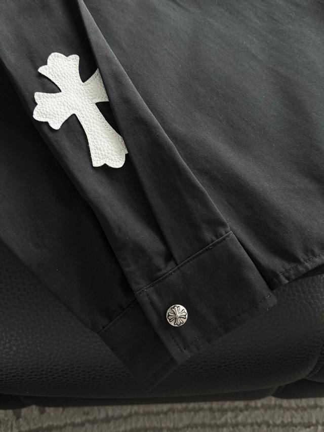 Chrome Hearts leather patchwork embroidered shirt jacket, unisex fit! Made of twill cotton fabric! Clear and smooth texture, wrinkle-resistant and colorfast! The embroidery process is complex and repetitive, requiring extremely precise embroidery machines with a spacing of 45cm! Too large or too small a spacing won't work! All hardware is engraved and cast, requiring a huge amount of material
