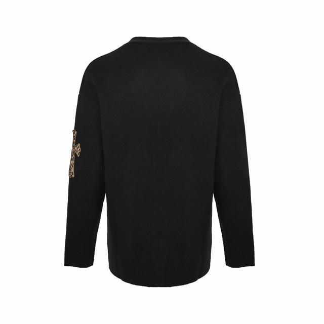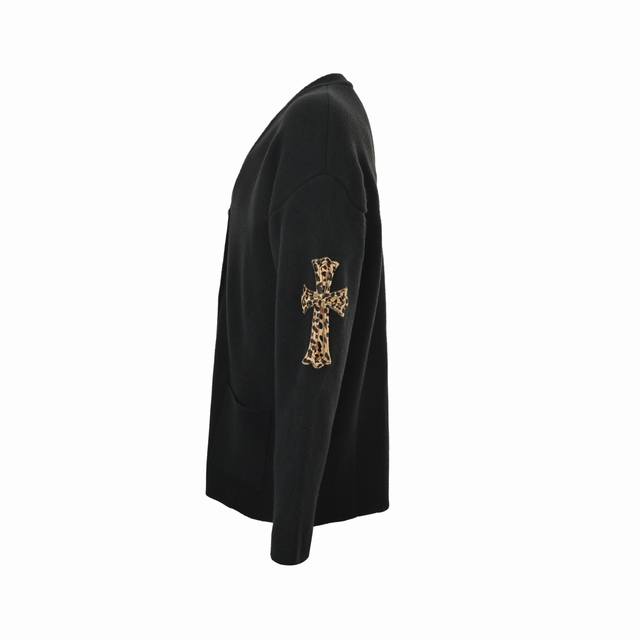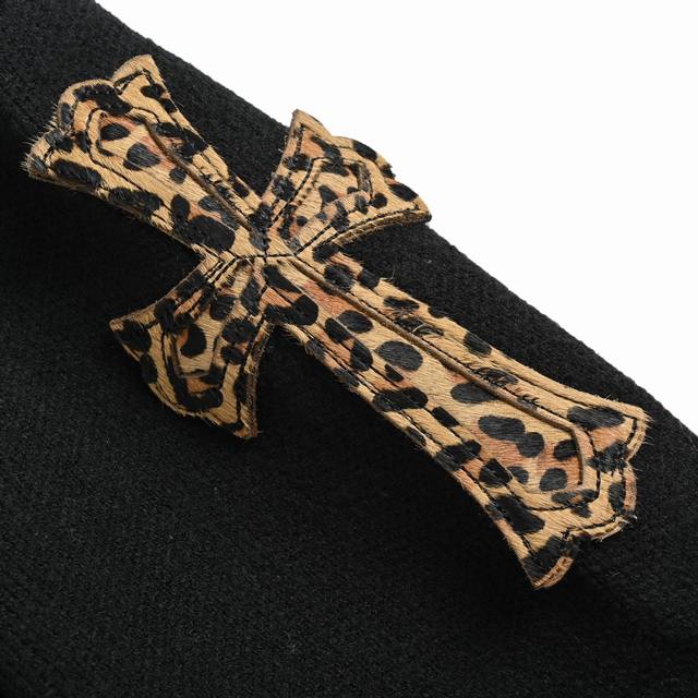 Chrome Hearts Leopard Print Cardigan with Patchwork Leather Label - After a month of production, it's finally shipped! I absolutely love it; it looks incredibly stylish on me. A quick browse through street style photos reveals celebrities treating it like a collector's item. A must-have for unisex, affordable luxury commuting. Developed to the highest quality version available online, it took a month from pattern making to production. Custom-made accessories ensure a high-end, sophisticated look! The entire garment is made of pure cotton knit yarn using imported machine knitting. Color: Black. Size: SL.
