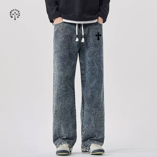 Chrome Hearts Overseas Edition 25Ss New Two-Color Heavy Washed Embroidery American Retro Workwear Washed Old Jeans!