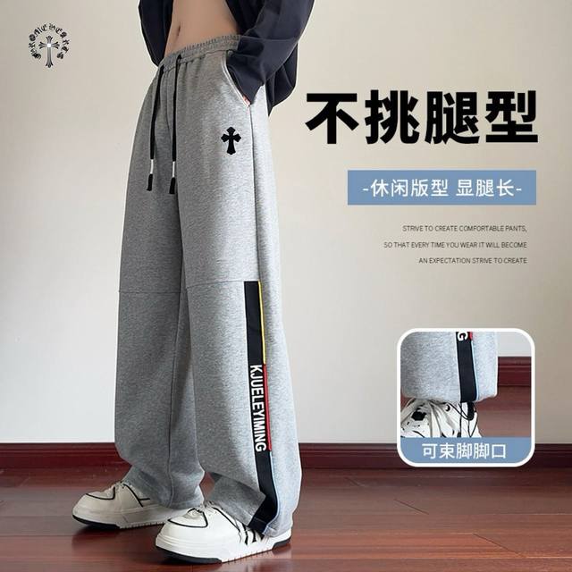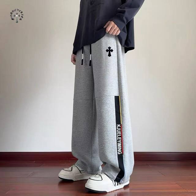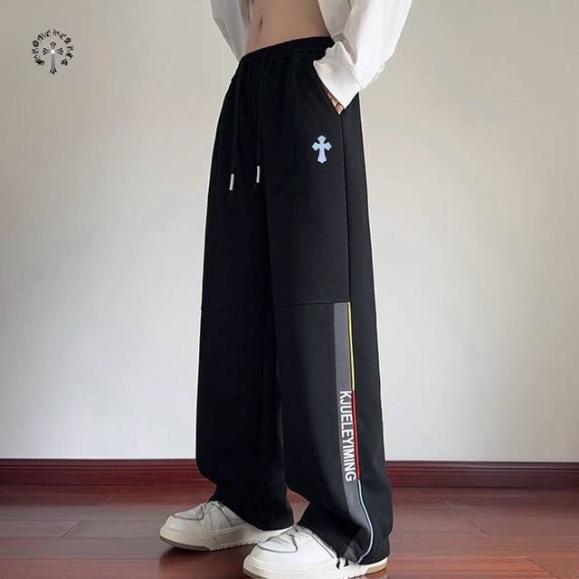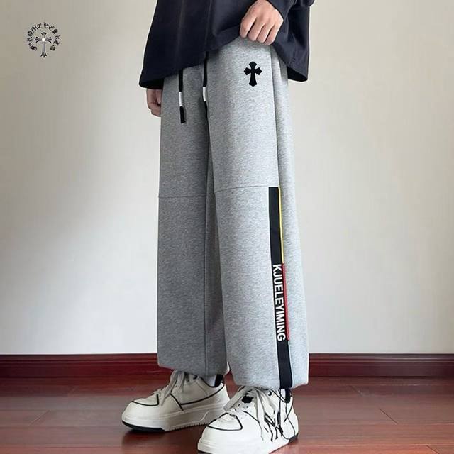 Chrome Hearts overseas version 25Ss new two-color high-quality label-matched casual sports pants!