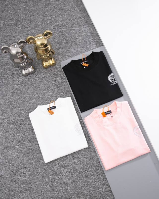 Chrome Hearts rhinestone short-sleeved T-shirt with logo on the front and back. High-end rhinestone technology. Comfortable and soft fabric, high-end washing. Ribbed and dyed in the same tank.
