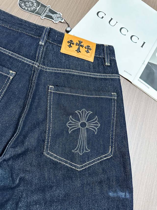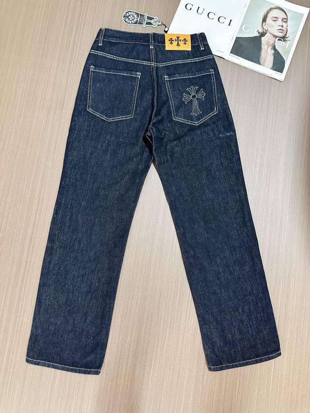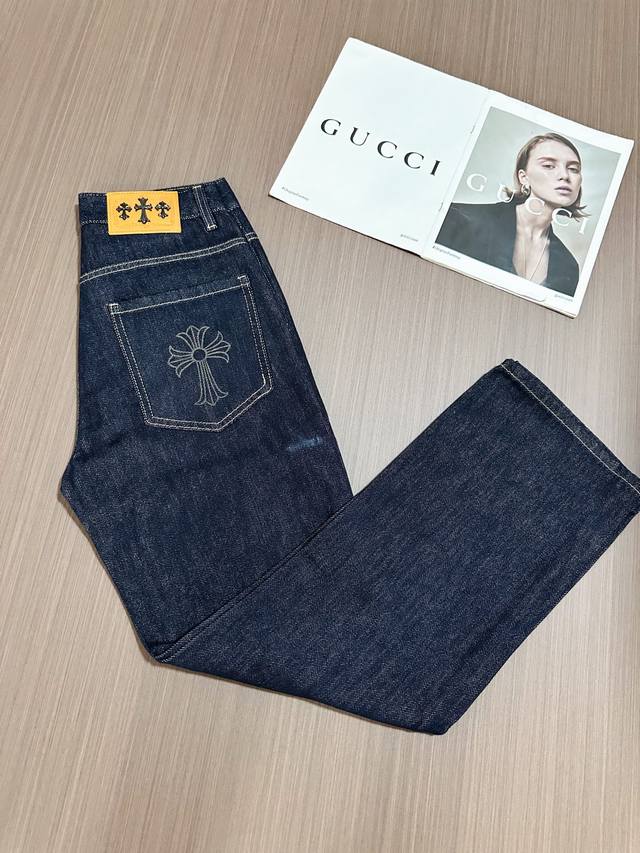 Chrome Hearts Stretch Slim Fit Straight Leg Jeans, All Seasons! High-quality stretch jeans that are also very comfortable. Super stretchy and stylish jeans! Heavy wash stretch! These jeans will amaze you with their ingenious design!! A pair of jeans with a raw fabric cut, a light color, and unique charm. Made from high-quality cotton fabric, featuring distressed details and appliqu