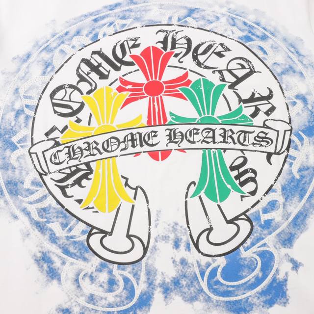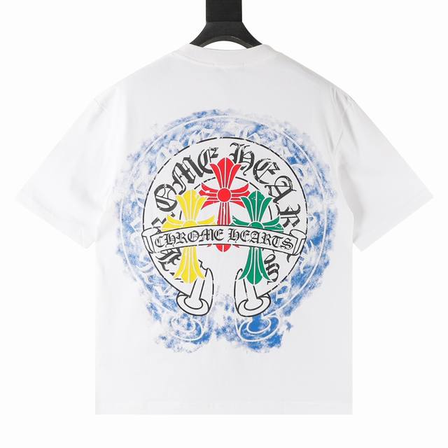 Chrome Hearts tricolor cross gradient horseshoe print short sleeves