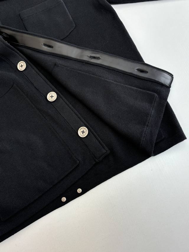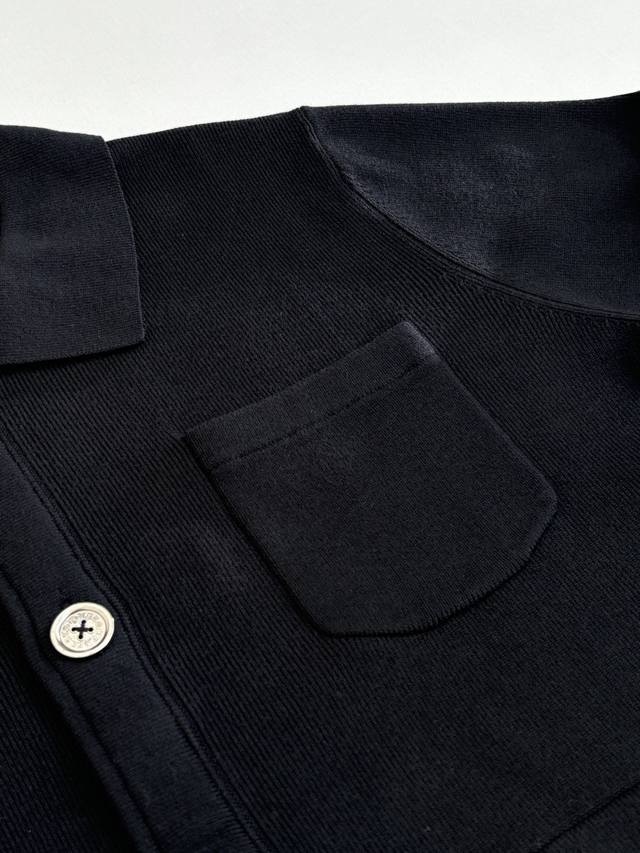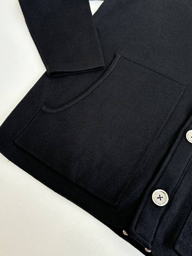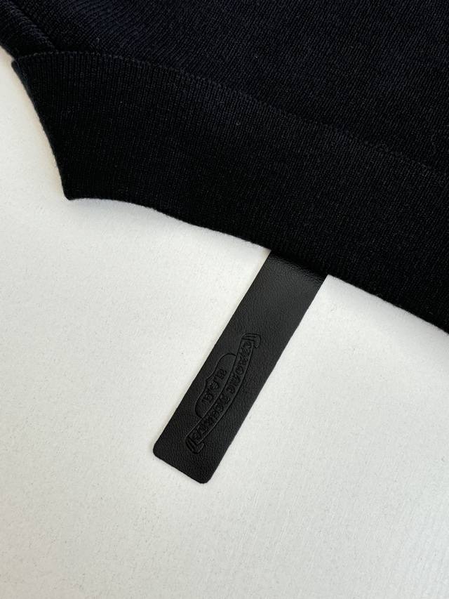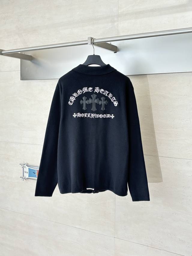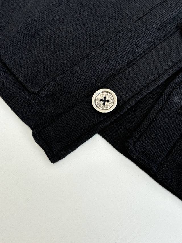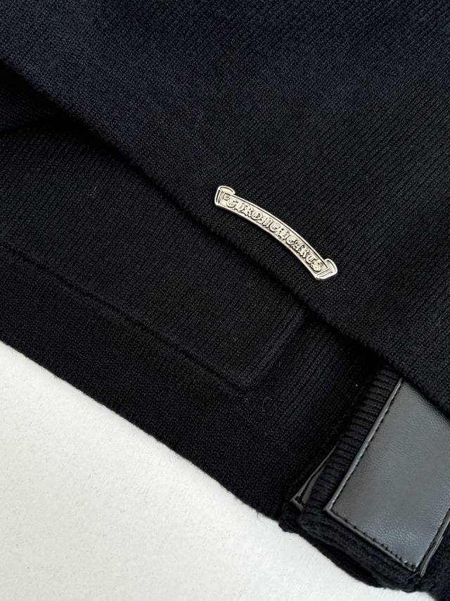 Chrome Hert* 25Ss Ch Wool and Leather Tribute Embroidered Knit Cardigan DDD The yarn is made of 26-count double-ply high-proportion Merino wool. The knitting is done on a German-imported Stol 352 flat knitting machine. The back, neckline, and placket are made of genuine sheepskin with engraving and cutting. The embroidery is done on an imported machine based on the original pattern, with multiple mold openings. The hardware has an aged and oxidized finish. DDD Size: SML DDD