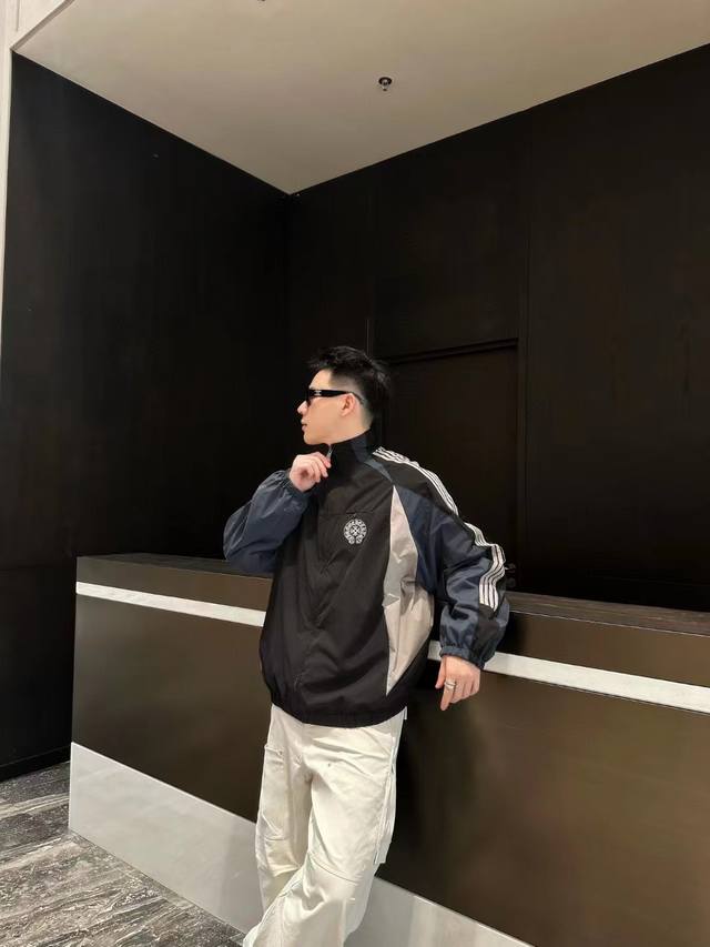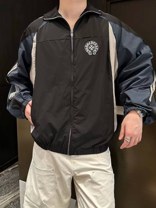 Chromehear Chromehear horseshoe embroidered patchwork and color-blocked stand-up collar jacket, vintage style, unisex style