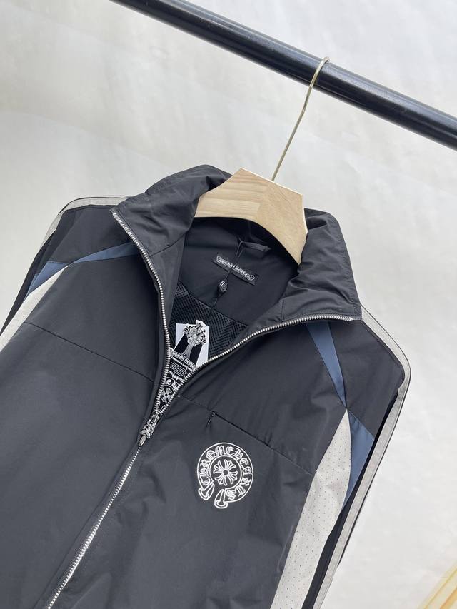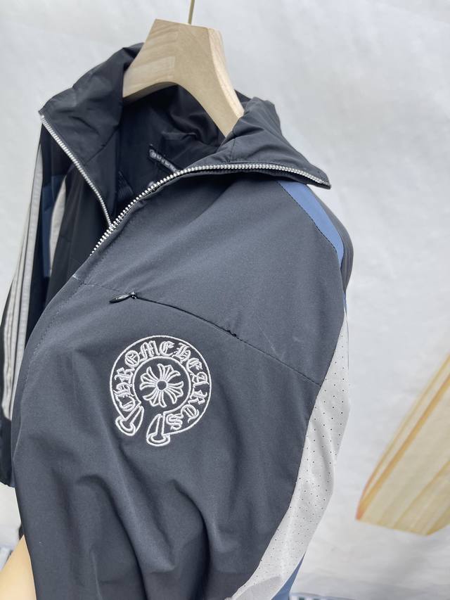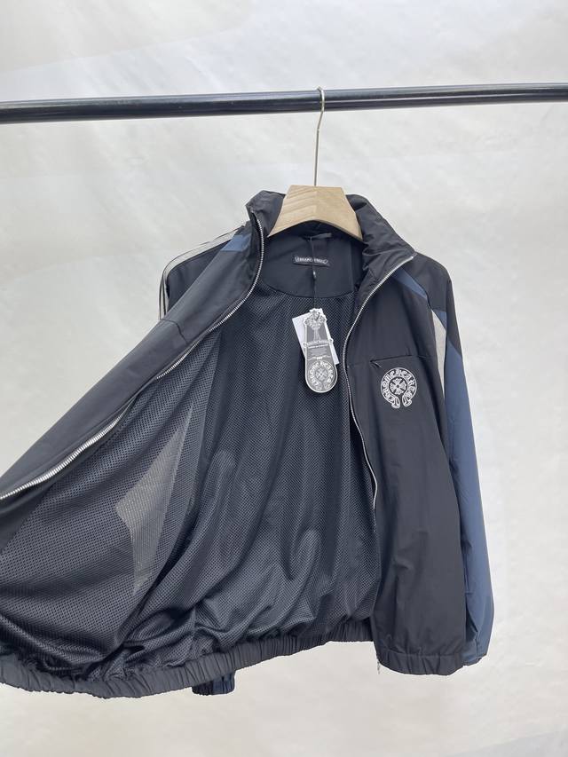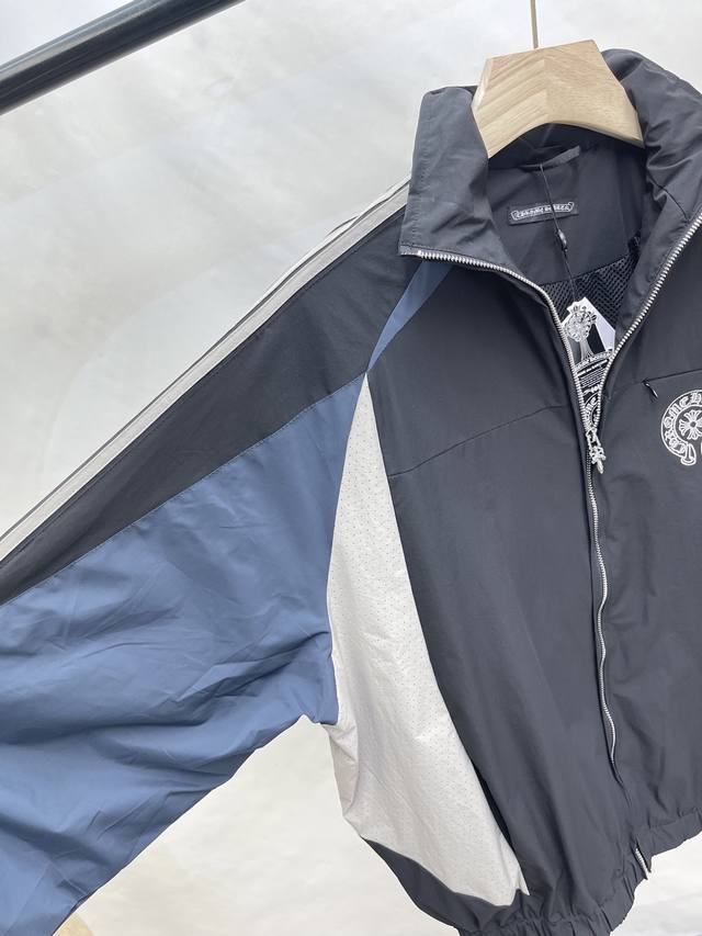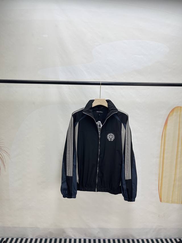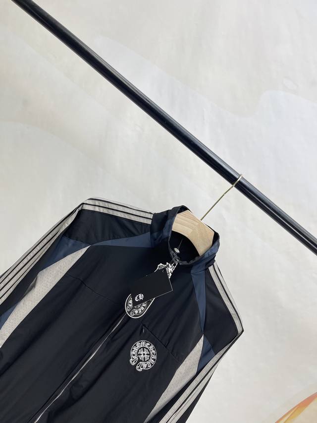 Chromehear Chromehear horseshoe embroidered patchwork and color-blocked stand-up collar jacket, vintage style, unisex style