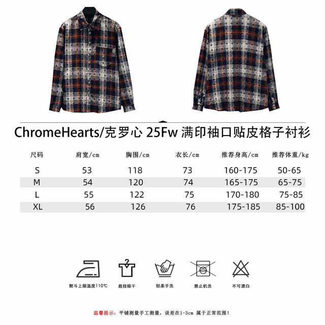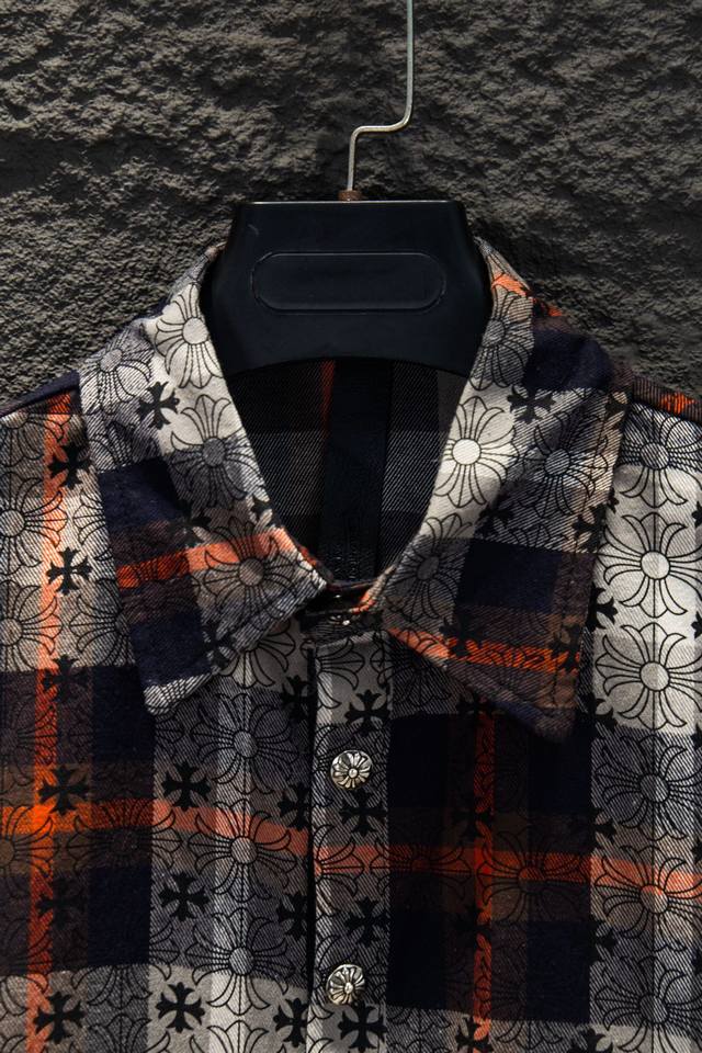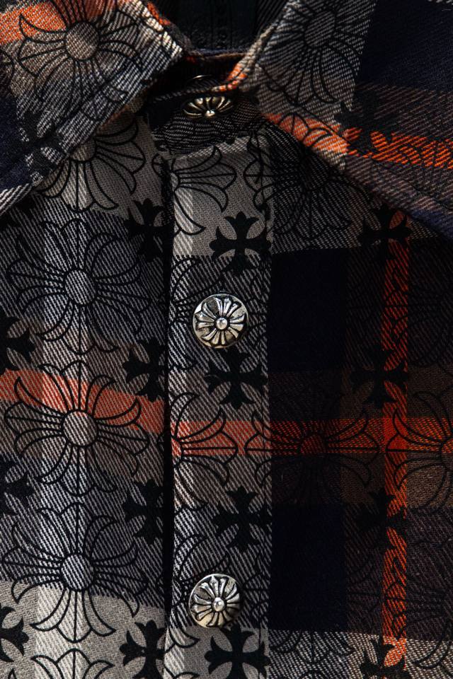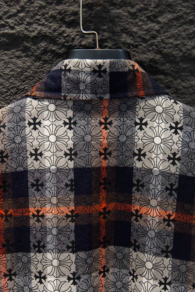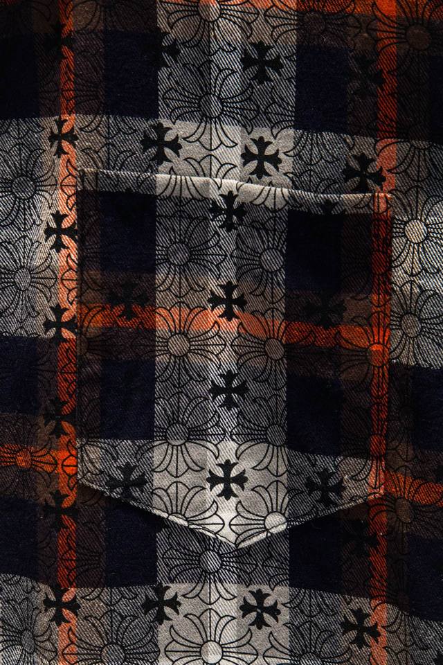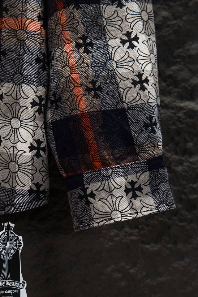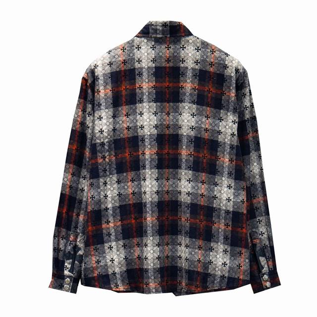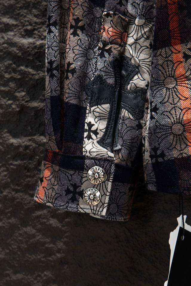 Chromehearts 25Fw Plaid Shirt with Printed Cuffs. Made with custom jacquard fabric, it's versatile and a club essential. This unisex shirt can be worn as a jacket or inner layer by both men and women, making it a perfect choice for both sexes!