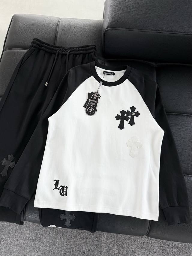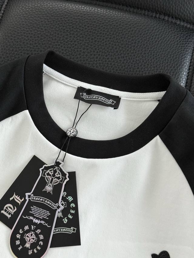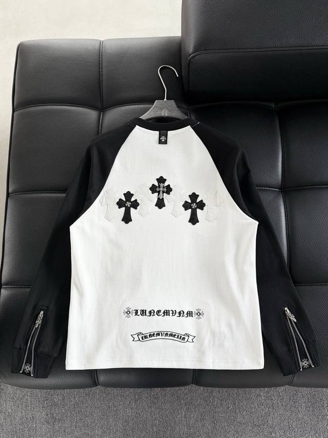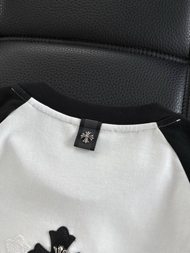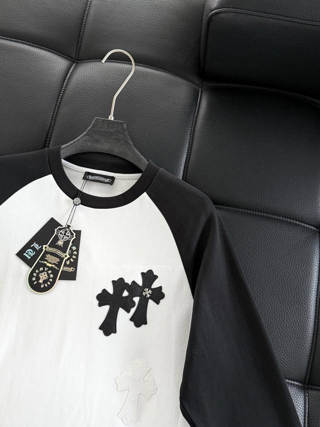 Chromehearts Crew Neck Raglan Sleeve - Quality Guaranteed! Made with double-sided cotton fabric, the texture is clearly visible, soft, delicate, and smooth. Custom-made patchwork leather ensures excellent drape! Exquisite workmanship, smooth shoulder lines, and all shoulder piping is done with imported chains. It has a certain thickness, unlike cheap materials with a shiny finish. Comfortable and not constricting, it's a trendy streetwear item that's easy for both men and women to style! Color: Black Sizes: M-3XL Style Number: 3599