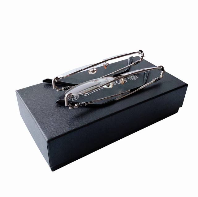 Chromehearts plain glasses frames are highly inquired about. They're the latest plain glasses that influencers love. They're super easy to wear. The Chromehearts cross is retro and can be paired with casual decor. This is the only one that looks stylish and retro. The workmanship is still excellent. This model is currently only available in limited quantities at the counter. You can customize your own prescription. Exclusive sale! ! High-end product, the counter costs tens of thousands! ! Originally made in Longgang, Chromehearts metal glasses frames! ! Anti-radiation, anti-blue light, a must-have trendy item for you who love playing with your phone!