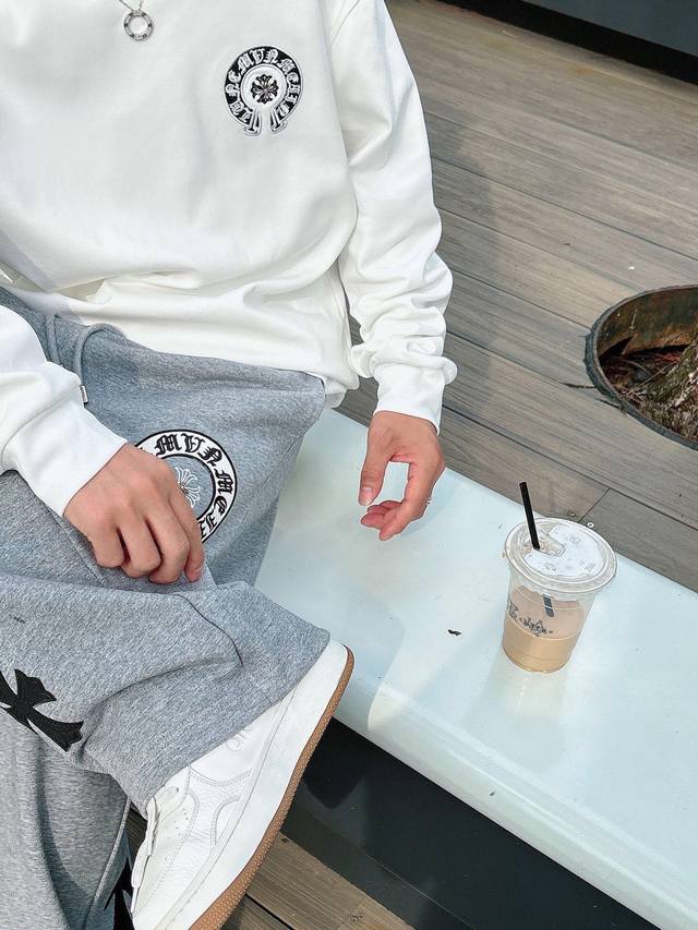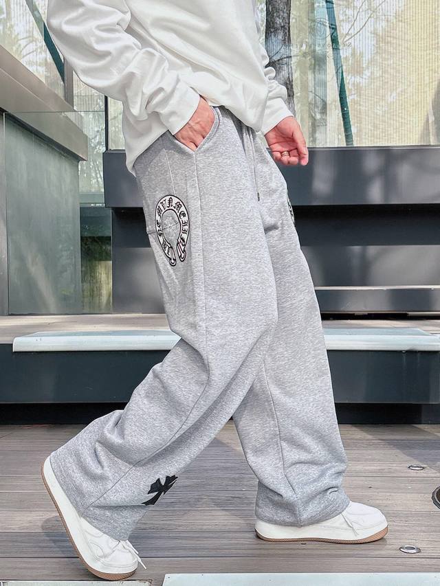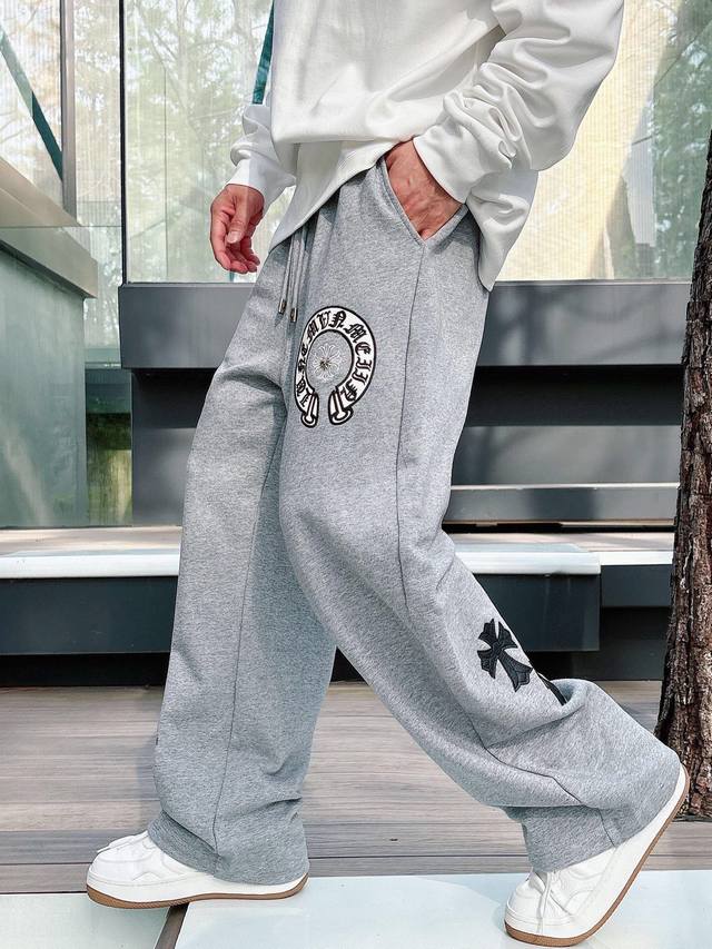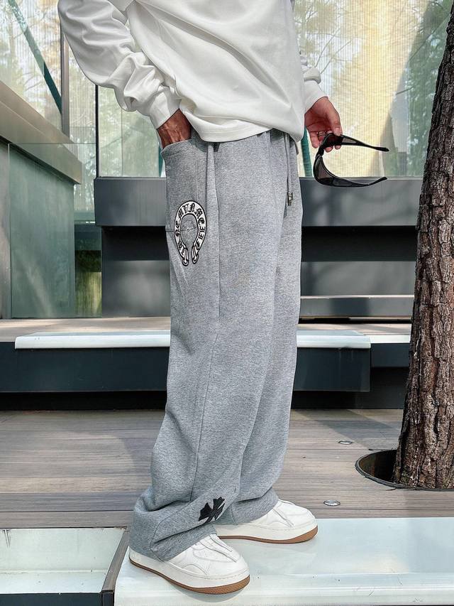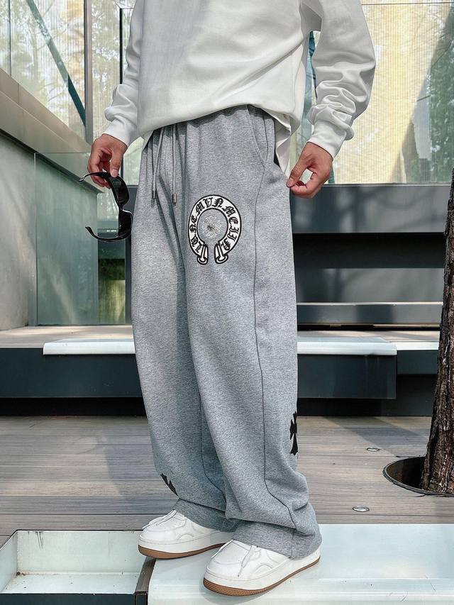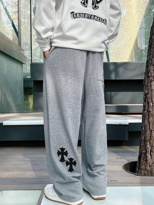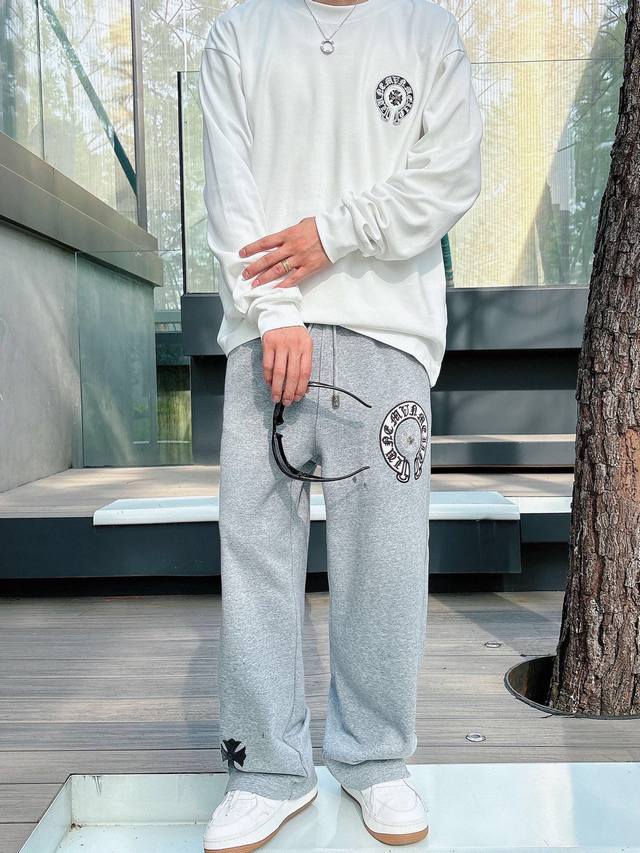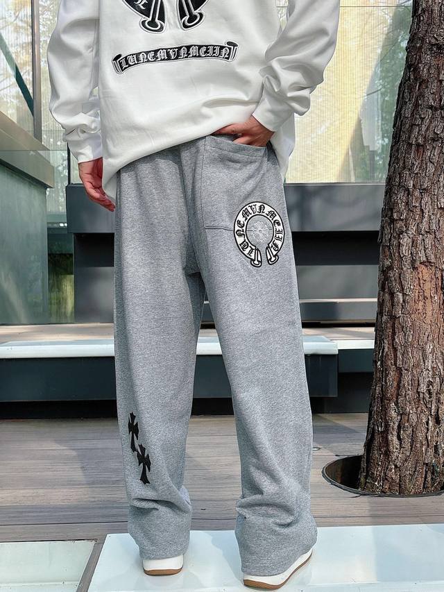Chromehearts terry cloth trousers. Quality guaranteed! Clearly visible weave, soft, smooth texture, custom 3D embroidered leather patchwork, excellent drape! Exquisite workmanship, smooth shoulder lines, all using imported chain stitching for the shoulder piping. A good thickness, not the cheap, shiny look. Comfortable and not constricting. A trendy streetwear item that's easy to style for both men and women! Colors: Black, White Sizes: M-3XL Style Number: 3750