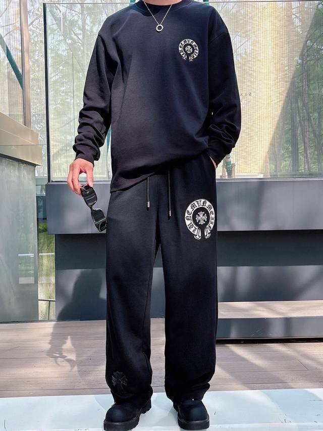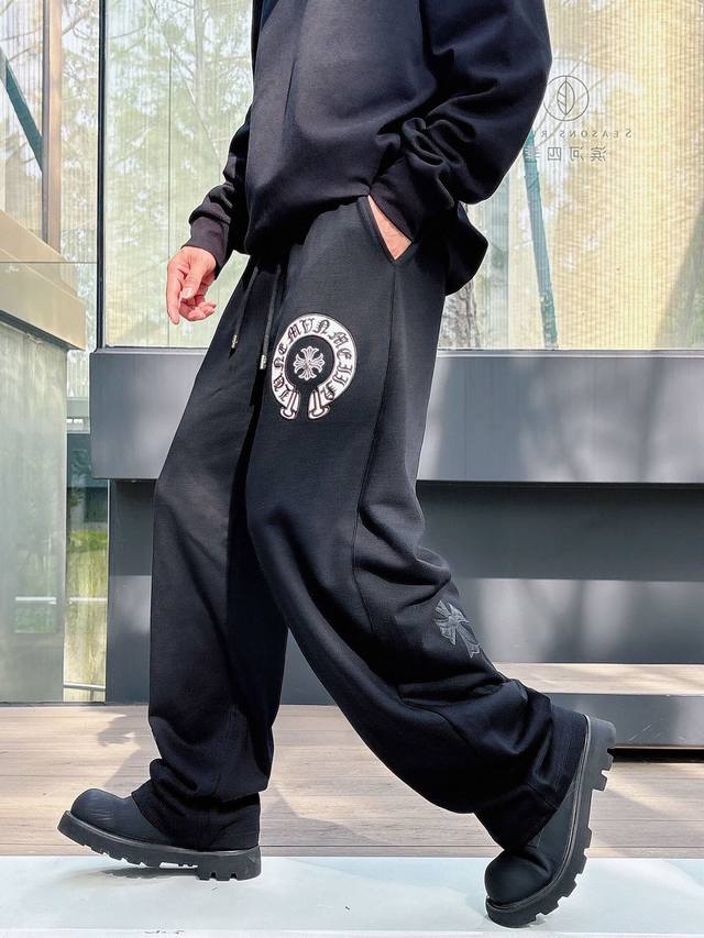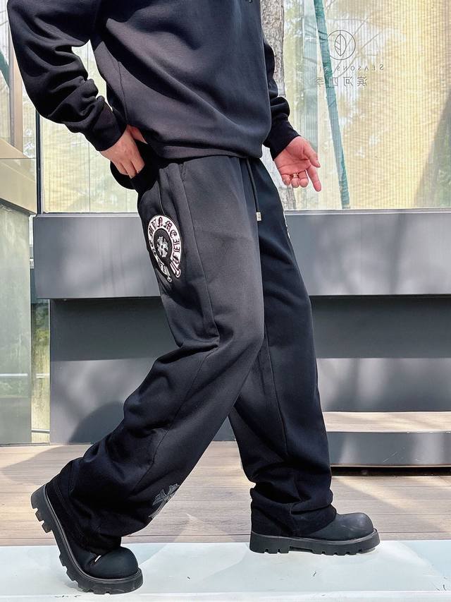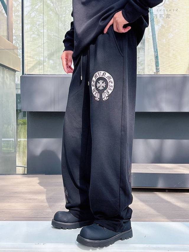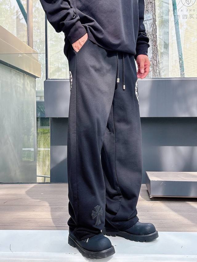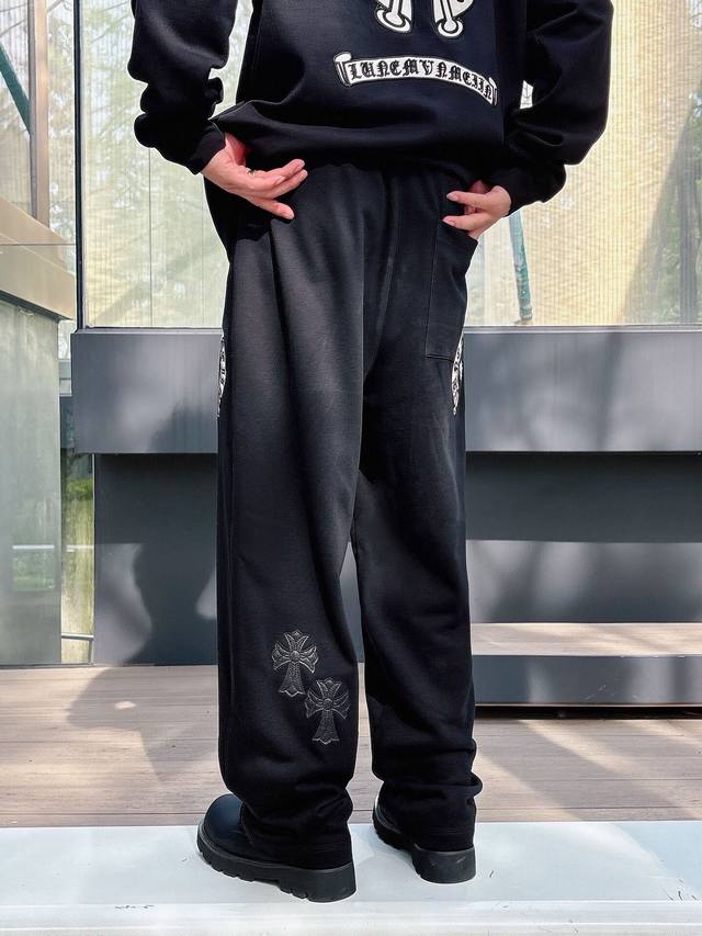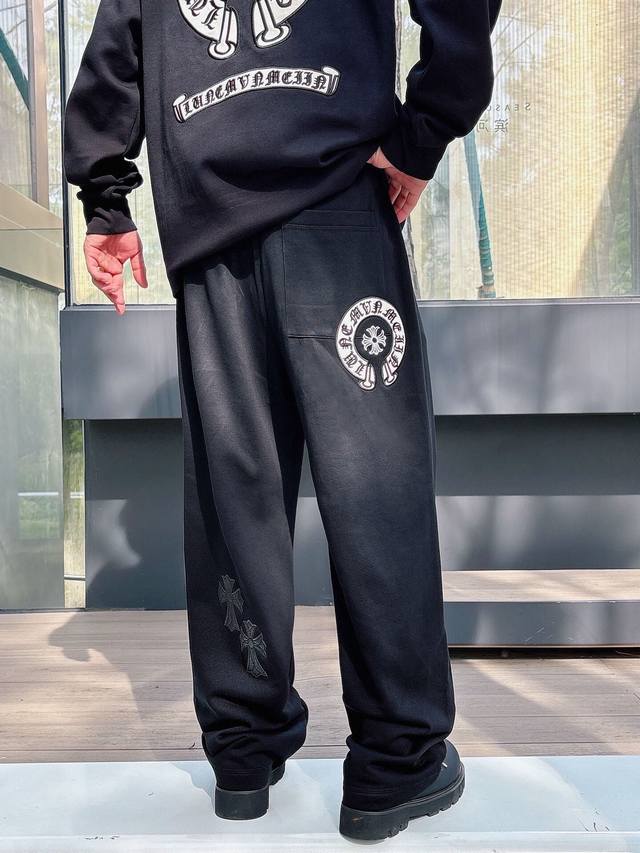 Chromehearts terry cloth trousers. Quality guaranteed! Clearly visible weave, soft, smooth texture, custom 3D embroidered leather patchwork, excellent drape! Exquisite workmanship, smooth shoulder lines, all using imported chain stitching for the shoulder piping. A good thickness, not the cheap, shiny look. Comfortable and not constricting. A trendy streetwear item that's easy to style for both men and women! Colors: Black, White Sizes: M-3XL Style Number: 3750
