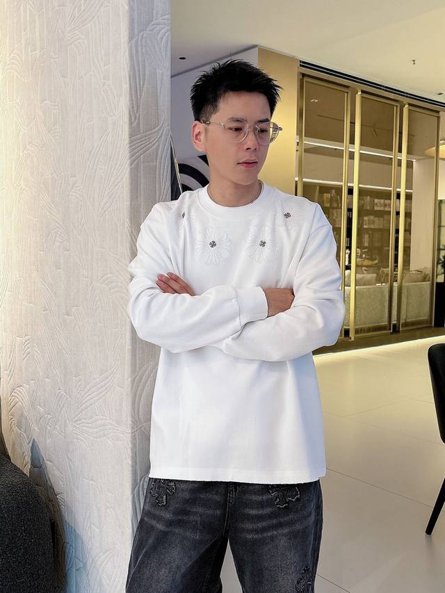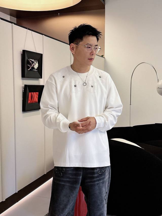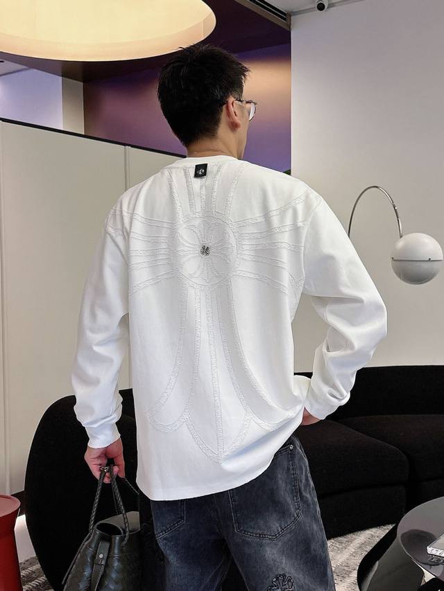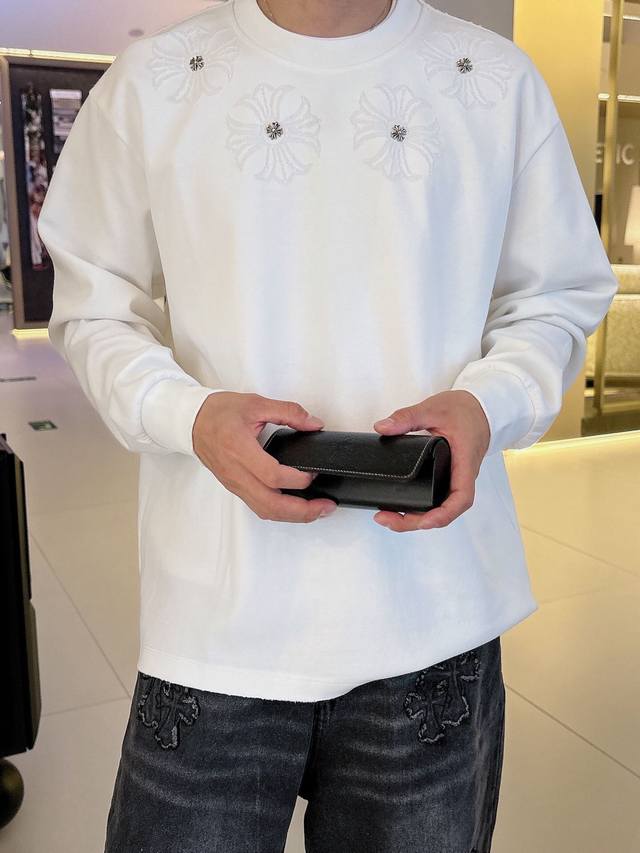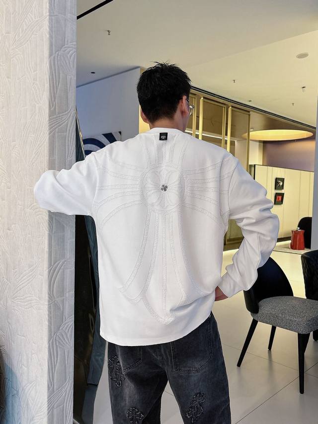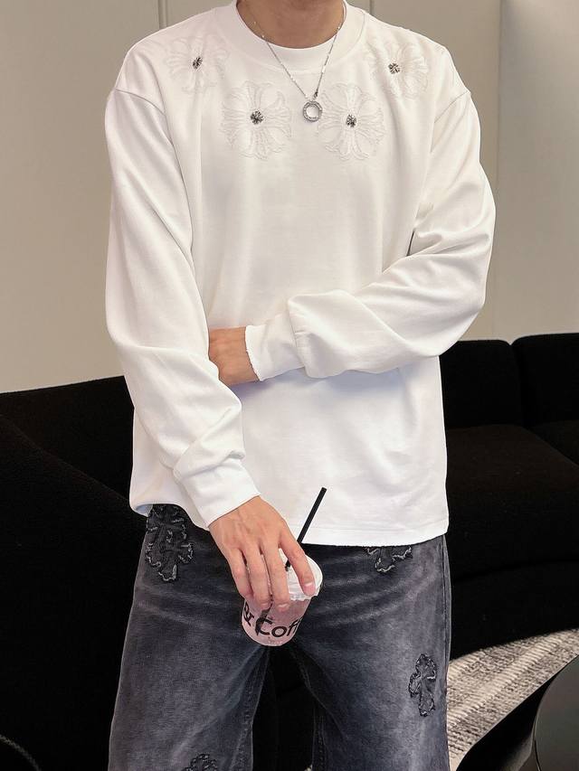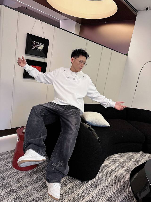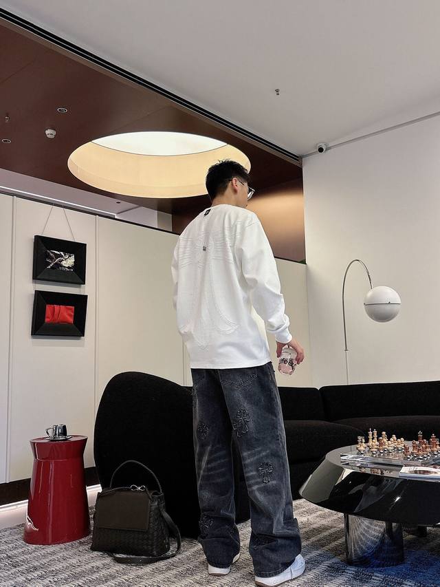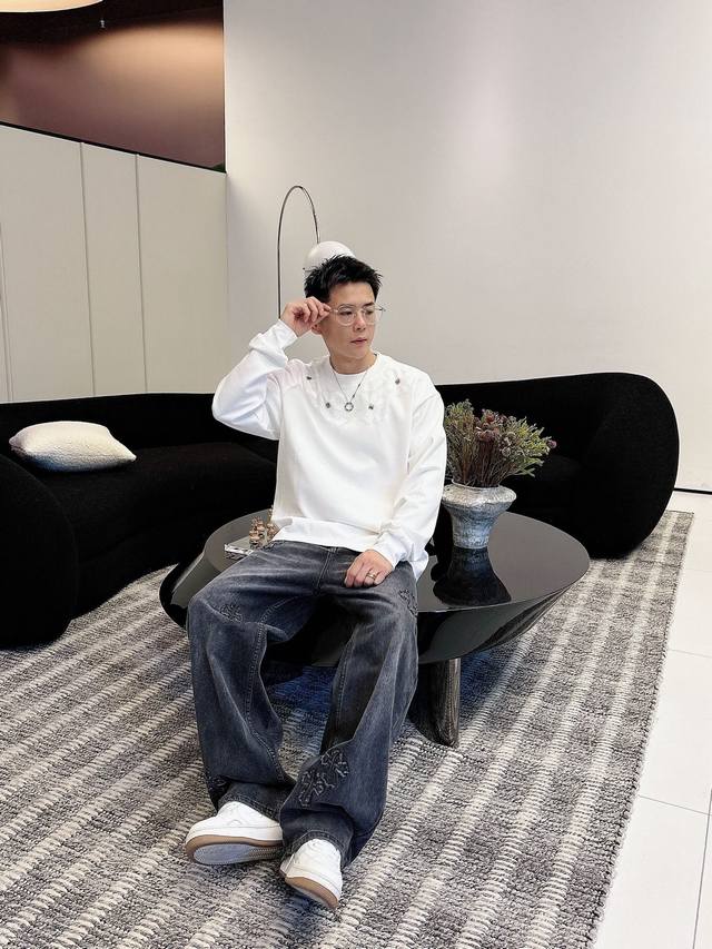 Clothes, Pants. Ch Chrome Hearts Cross Horseshoe Chrome Hearts Sanskrit Burnished Washed Distressed Long Sleeve Textured Pattern Trendy Brand Original Fabric Laser Burnished Applique Embroidered Letters Exquisite Embroidery Excellent Bestseller.