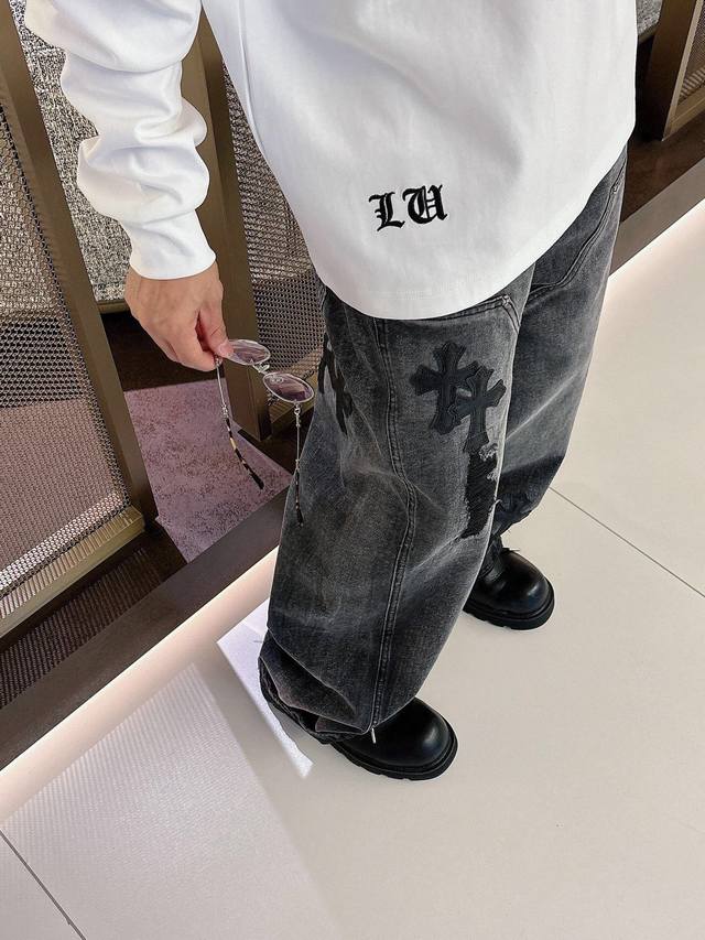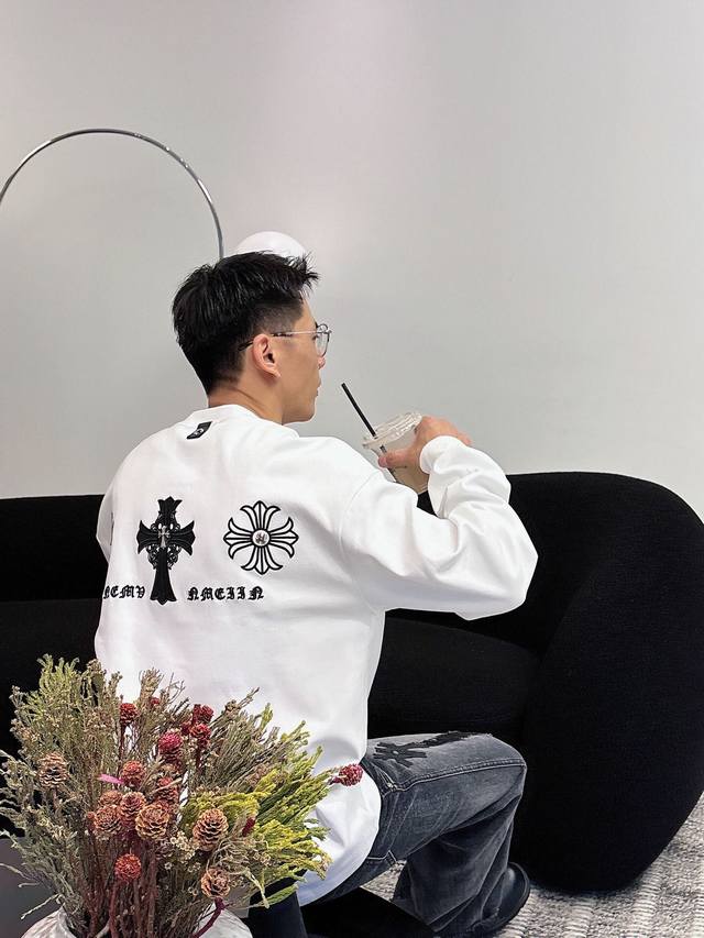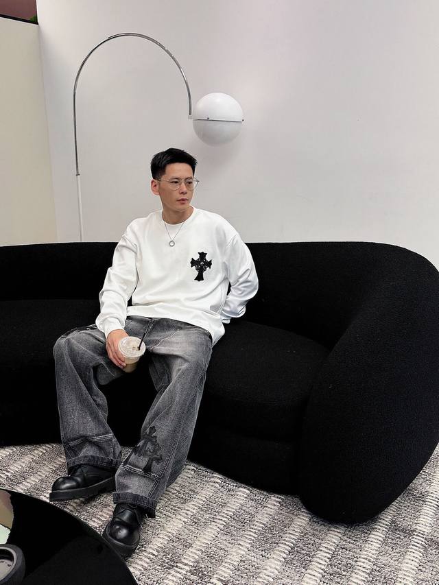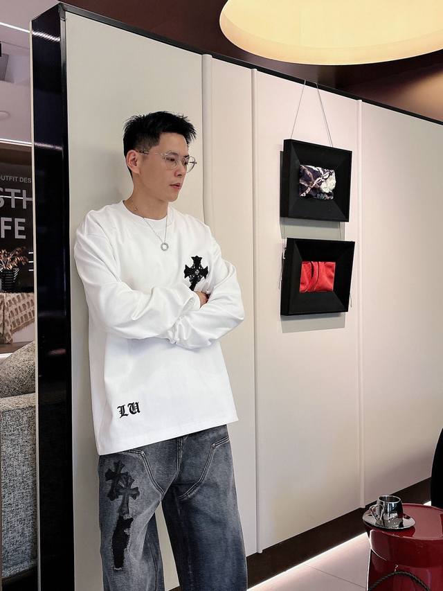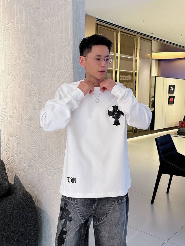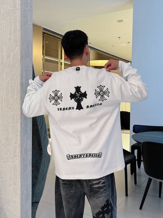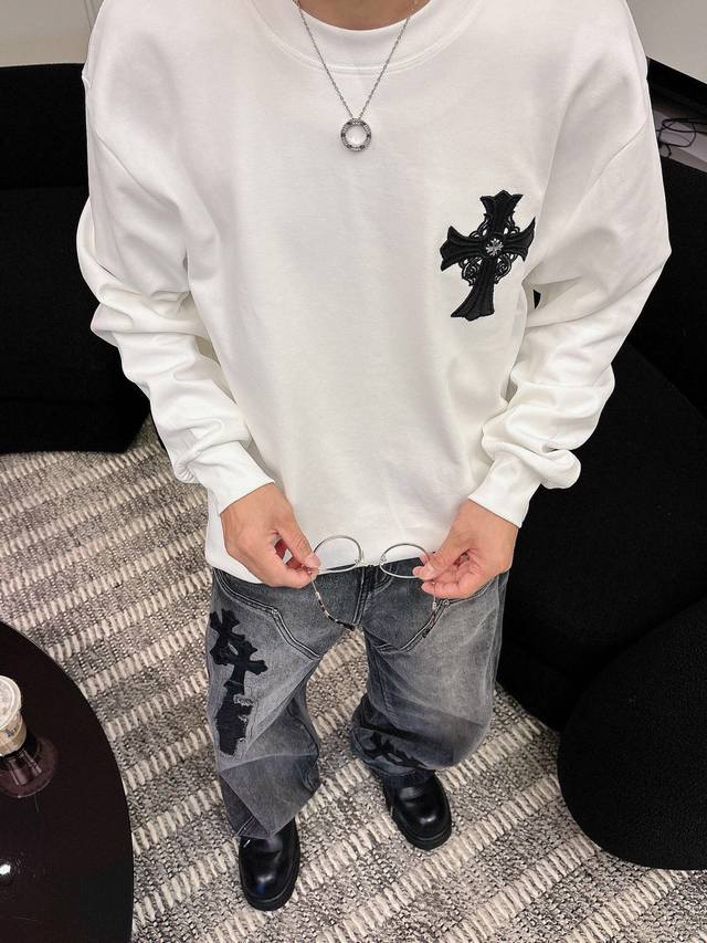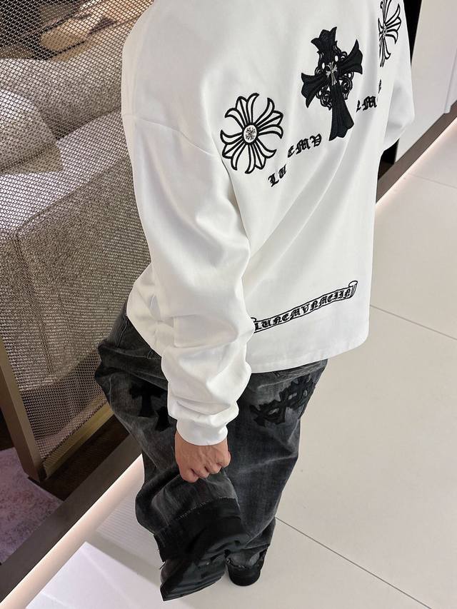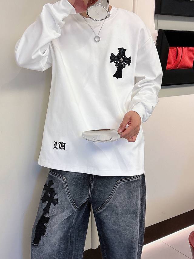 Clothes, Pants. Chromehearts Crew Neck Long-Sleeve Shirt - Quality Guaranteed! Made with double-sided cotton fabric, the texture is clearly visible, soft, delicate, and smooth. Custom-designed 3D embroidered leather patchwork, excellent drape! Exquisite workmanship, smooth shoulder lines, all using imported chain stitching for the shoulder piping. A bit thicker than cheap materials, it's comfortable and not tight against the skin. A trendy streetwear item that's easy to match for both men and women! Colors: Black, White Sizes: M-3XL Style Number: 35913757