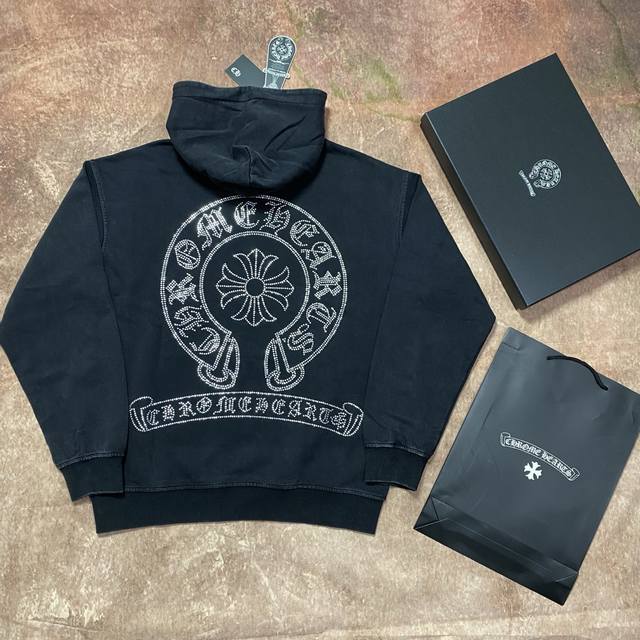 Come Hearts Ch New Washed Rhinestone Horseshoe Couple Casual Hooded Sweatshirt (Top Version)! Customized 420g terry cloth fabric! Designer style Chrome washed distressed Sanskrit rhinestone sweatshirt with leather embroidery and hardware! Accessories: Original mold, authenticated, 100% silk washing label. Original hangtag, matching 3D hang tag, original packaging bag. Craftsmanship: Consistent stitching! Top version armhole matching technique! Countless pattern making for 100% perfect reproduction! Correct version, unisex, super eye-catching, super good-looking, super stylish! Color: Black Size: S-XL