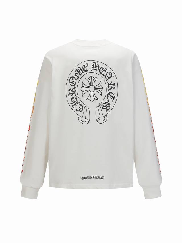 Come Hearts Chrome Hearts Sanskrit Gradient Dark Pattern Horseshoe Print Round Neck Long Sleeve T-Shirt. A must-have for autumn/winter, this T-shirt exudes style and personality. Perfect for couples to wear together and create a striking look. Colors: Black, White. Sizes: XS-L.
