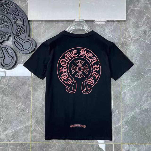 D17 Ddd Chrome Hearts T-shirt, loose-fitting trendy couple style, short-sleeved round neck, made with custom fabric, 1:1 color matching ribbed knit, and eco-friendly print. Odorless, vibrant colors, 250g high-weight pure cotton fabric, with perfect details. Available in black and white, sizes S-XL. DDD