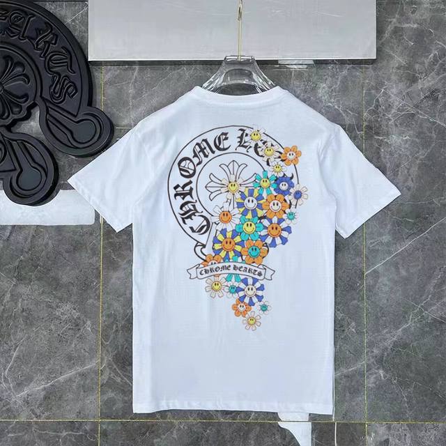 D27 Ddd Chrome Hearts Sanskrit Rainbow Smiley Face Flower Horseshoe Print Unisex Loose Short-Sleeve T-Shirt, Available in Black and White, Sizes S-XL DDD