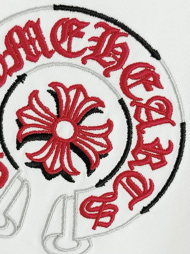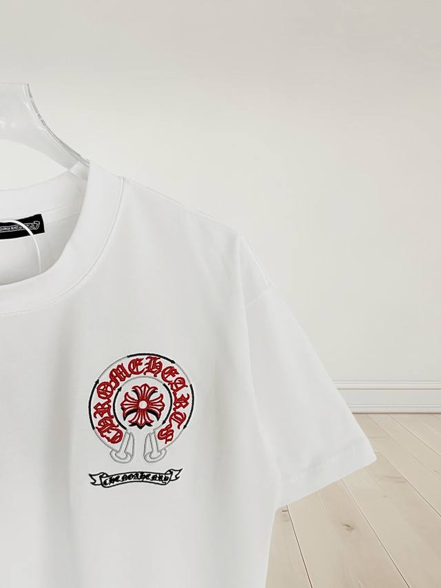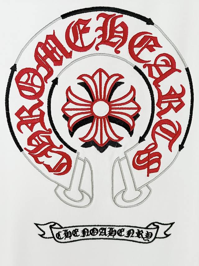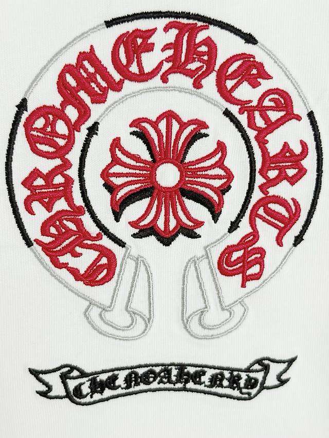 High Quality Chrome Hearts new embroidered horseshoe logo. The brand logo is embroidered with 100,000 stitches on the front and back panels using a high-end custom 32-count 280g fabric. Soft to the touch, comfortable to wear, exquisite stitching, fine workmanship, and incredibly stylish look! Unisex. Colors: White, Black. Sizes: S-XL.